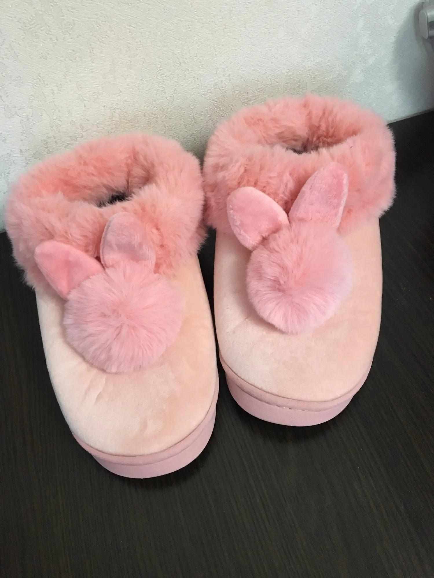Zapatillas de otoño invierno de algodón con piel de conejo para el hogar, zapatos cálidos de algodón con parte inferior gruesa, zapatillas para mujeres, lindas pantuflas mullidas de gato