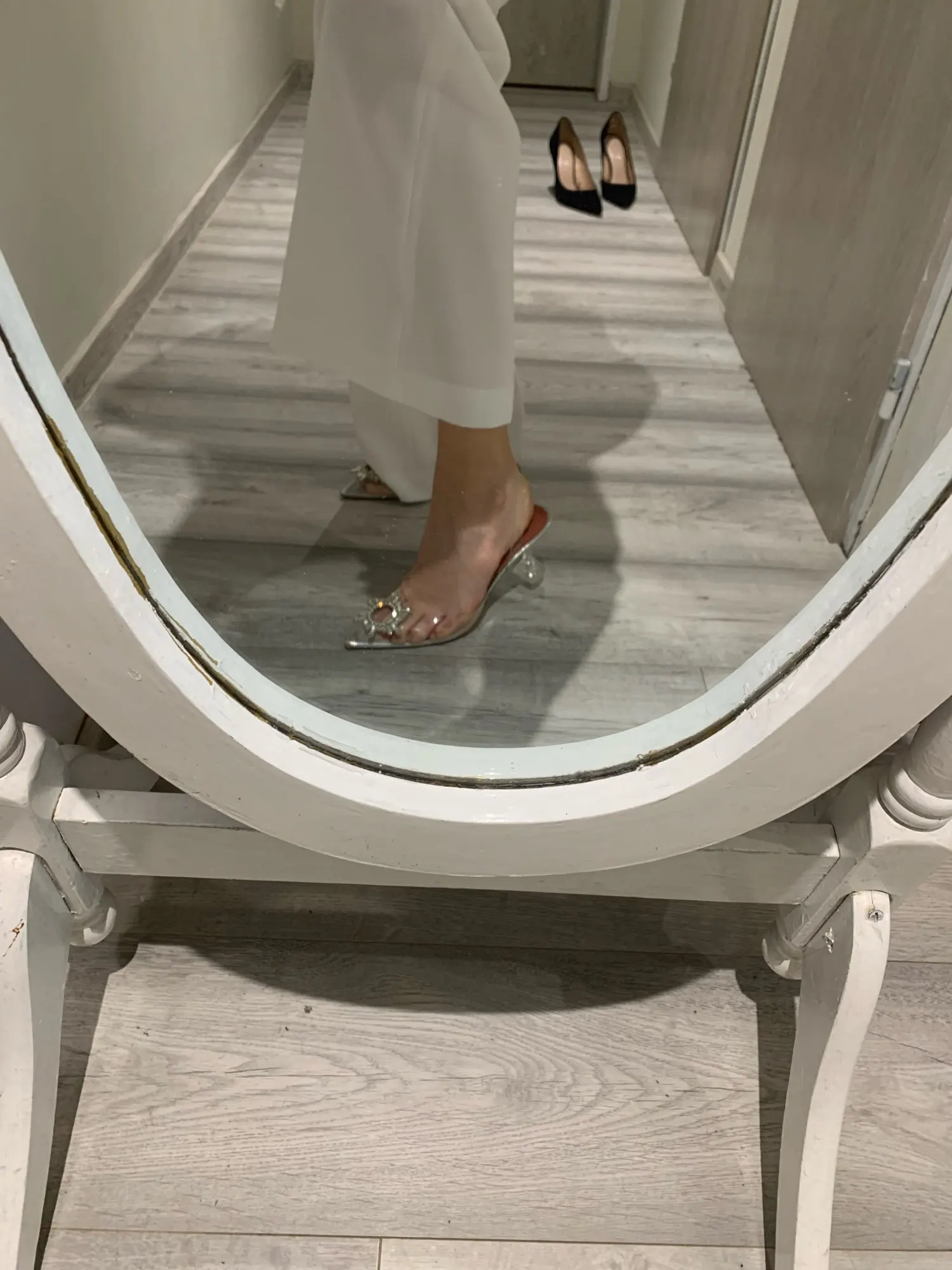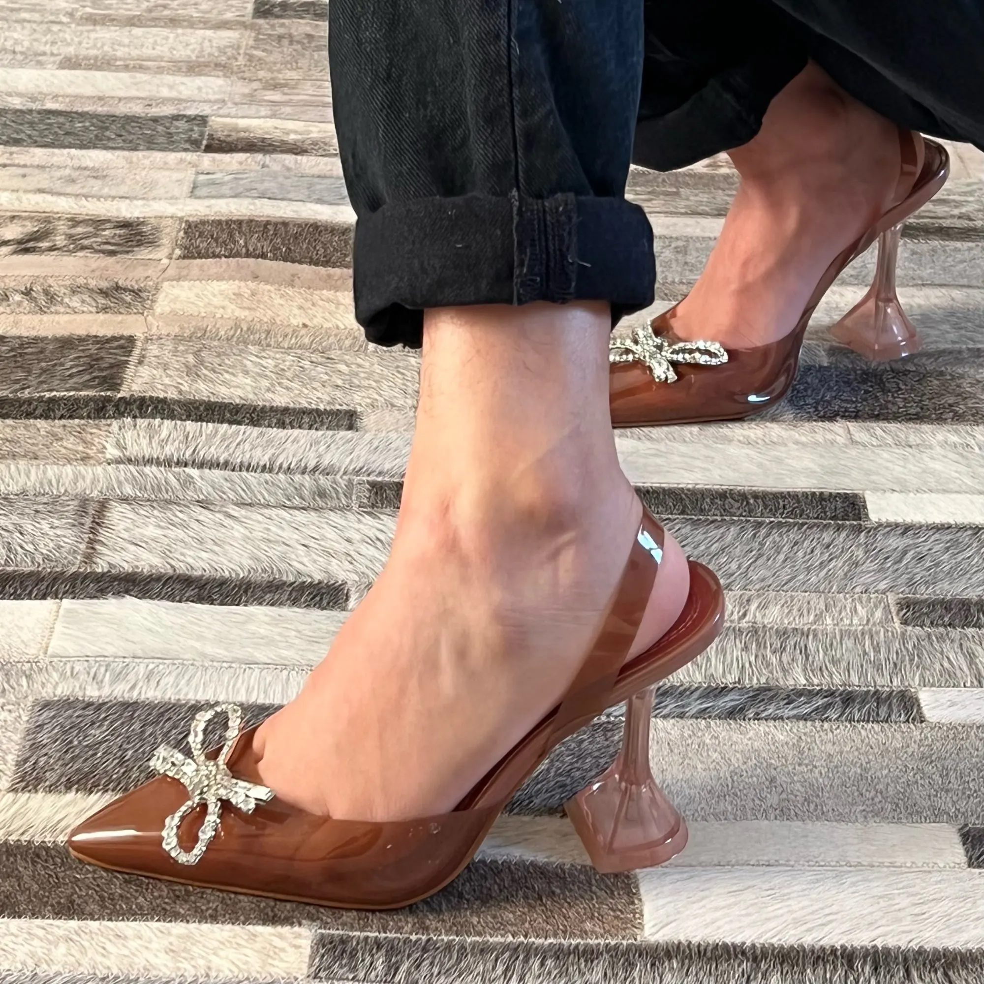 Zapatos de tacón de talla grande 44 y 45 para mujer, zapatos elegantes de punta estrecha con tacones de pedrería, zapatos de boda con tacón transparente, Sandalias de tacón