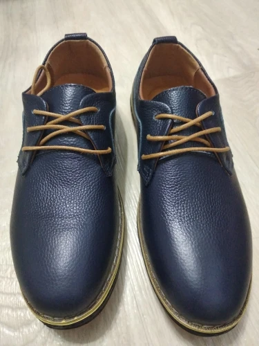 Zapatos de vestir de cuero genuino para hombre, mocasines informales con cordones, cómodos, a la moda, para oficina