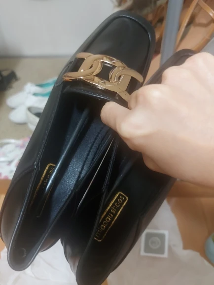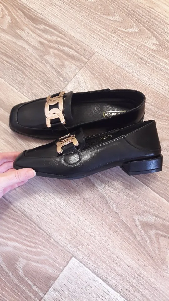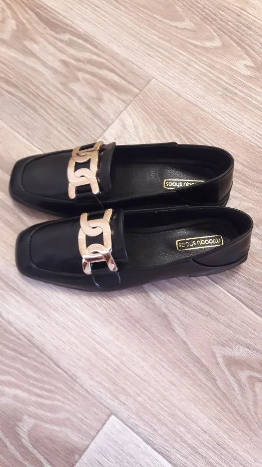 Zapatos planos de invierno para mujer, mocasines sin cordones con punta cuadrada británica, de marca, con cadena de Metal, informales, bailarina, talla grande 41
