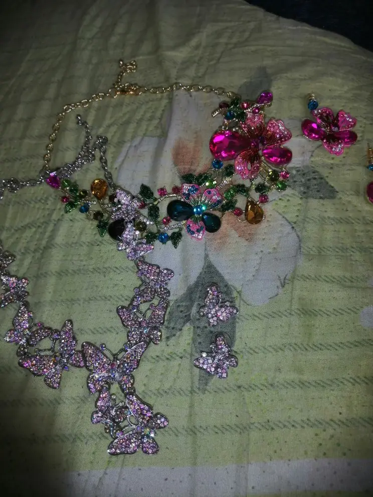 Zlxgirl Classice-Conjunto de joyería de boda para mujer, collar de flores esmaltadas de colores con accesorios para pendientes