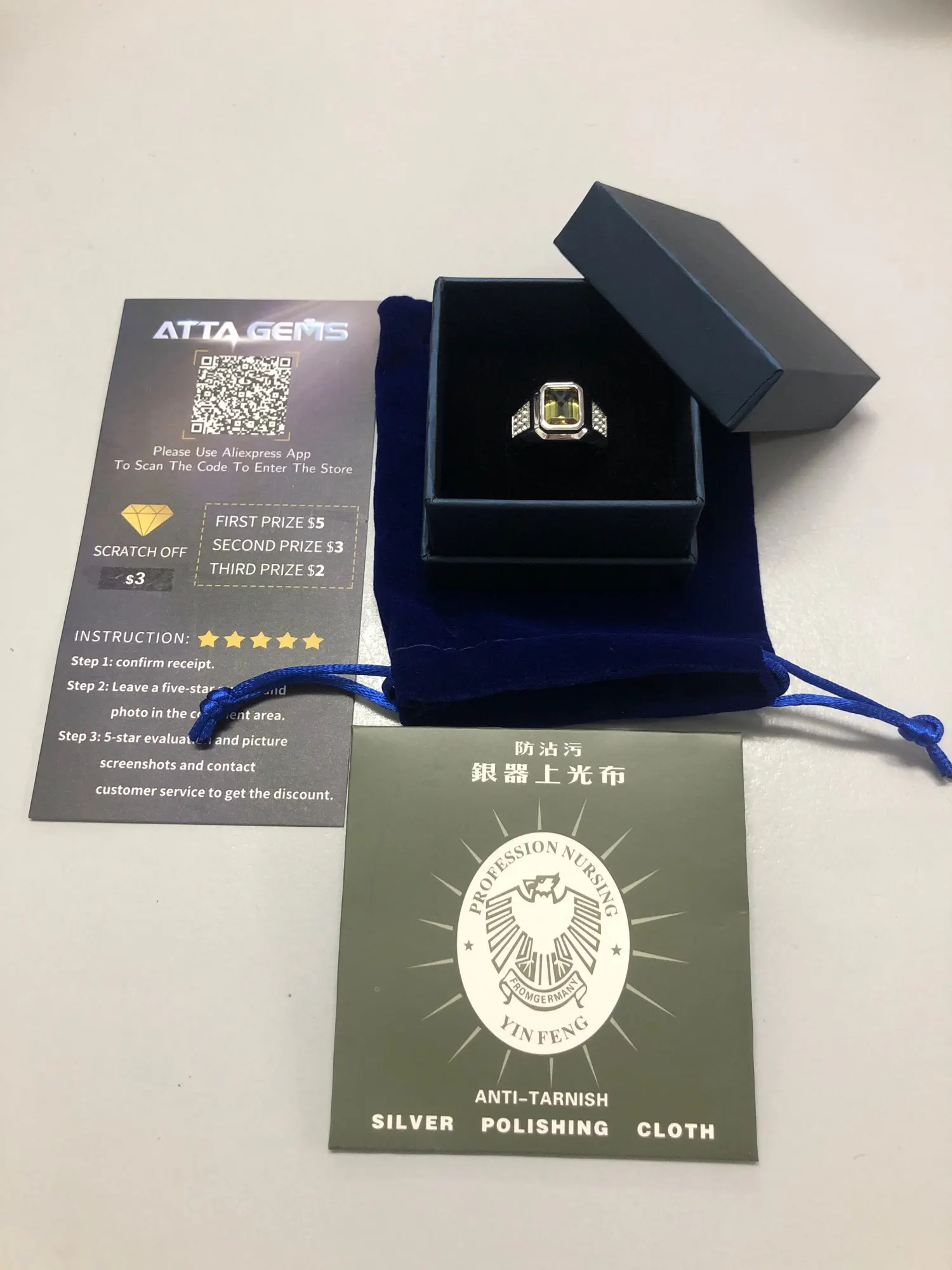 El anillo es precioso. Viene con una caja elegante para guardar el anillo y un paño para limpiar la plata. Muy recomendable!