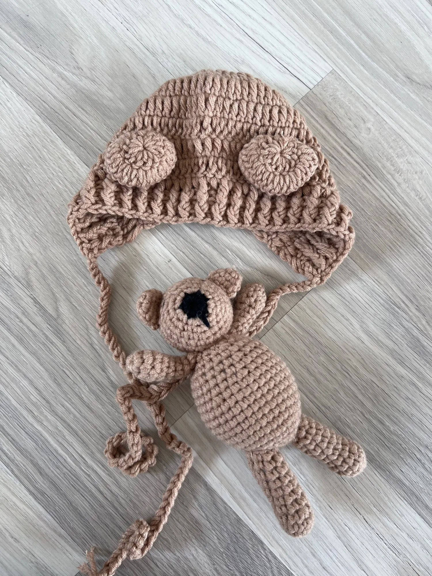 0-2month tricoté laine hiver unisexe bébé chapeaux nouveau-né bébé ours chapeau ensemble filles garçons photographie Crochet tricot Costume