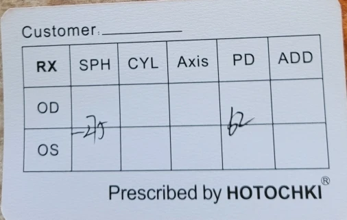 SPH,CYL,AXIS for Both Eyes, PD and ADD