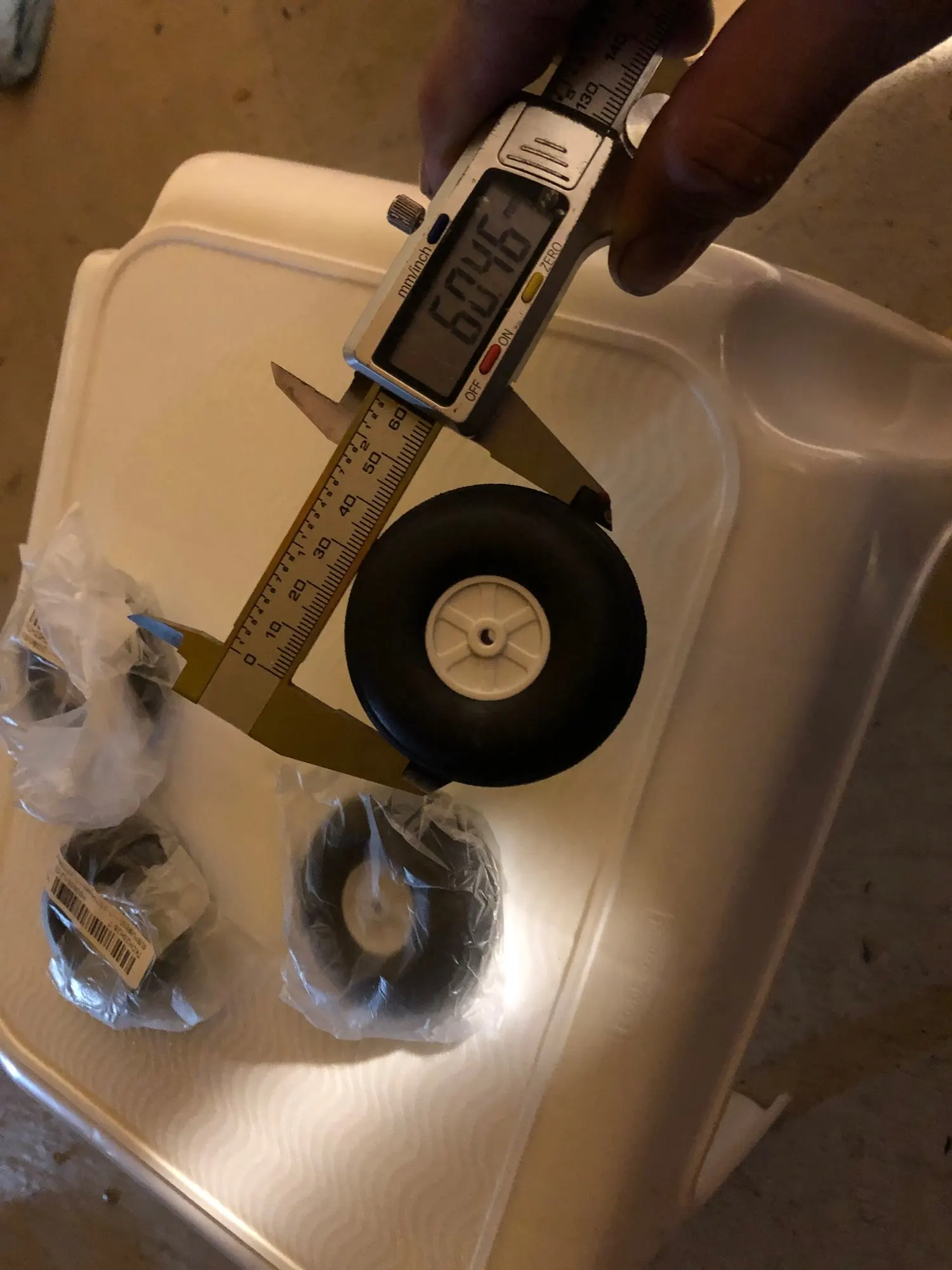 6cm de diametre pour le 2,5' Trou 3mm Mousse assez dure super légère Qualité ok sans plus Expedition 13 jours