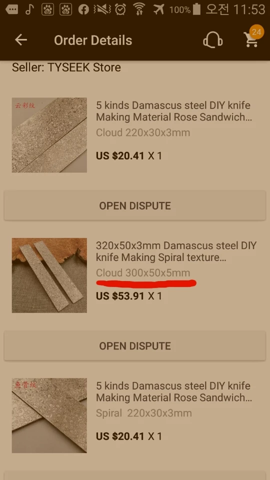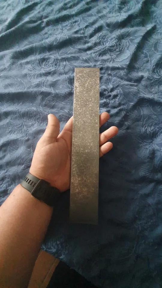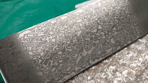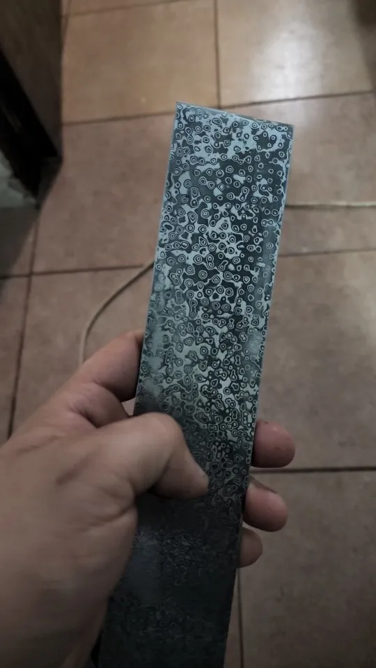 j'enlève une étoile parceque la barre d'acier n'est pas parfaitement plat. Mais le Damas correspond bien à la photo.