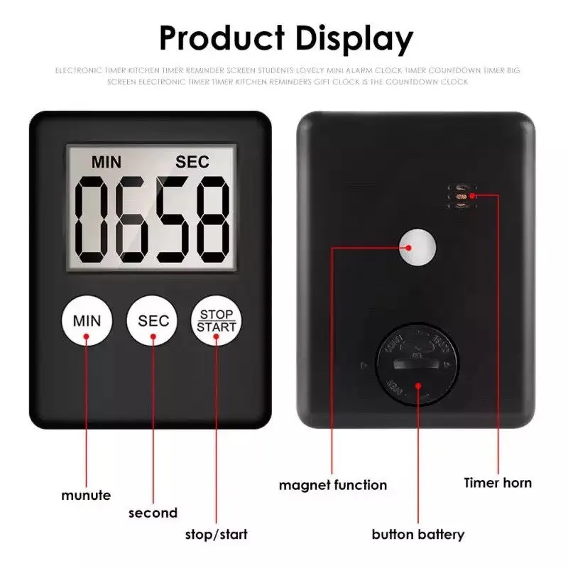 1 pièces Super Mince D'AFFICHAGE À CRISTAUX LIQUIDES Affichage Numérique Minuterie de Cuisine Carré Compte À Rebours Alarme Horloge Aimant Sommeil Chronomètre Horloge Minuterie Cuisine Outil