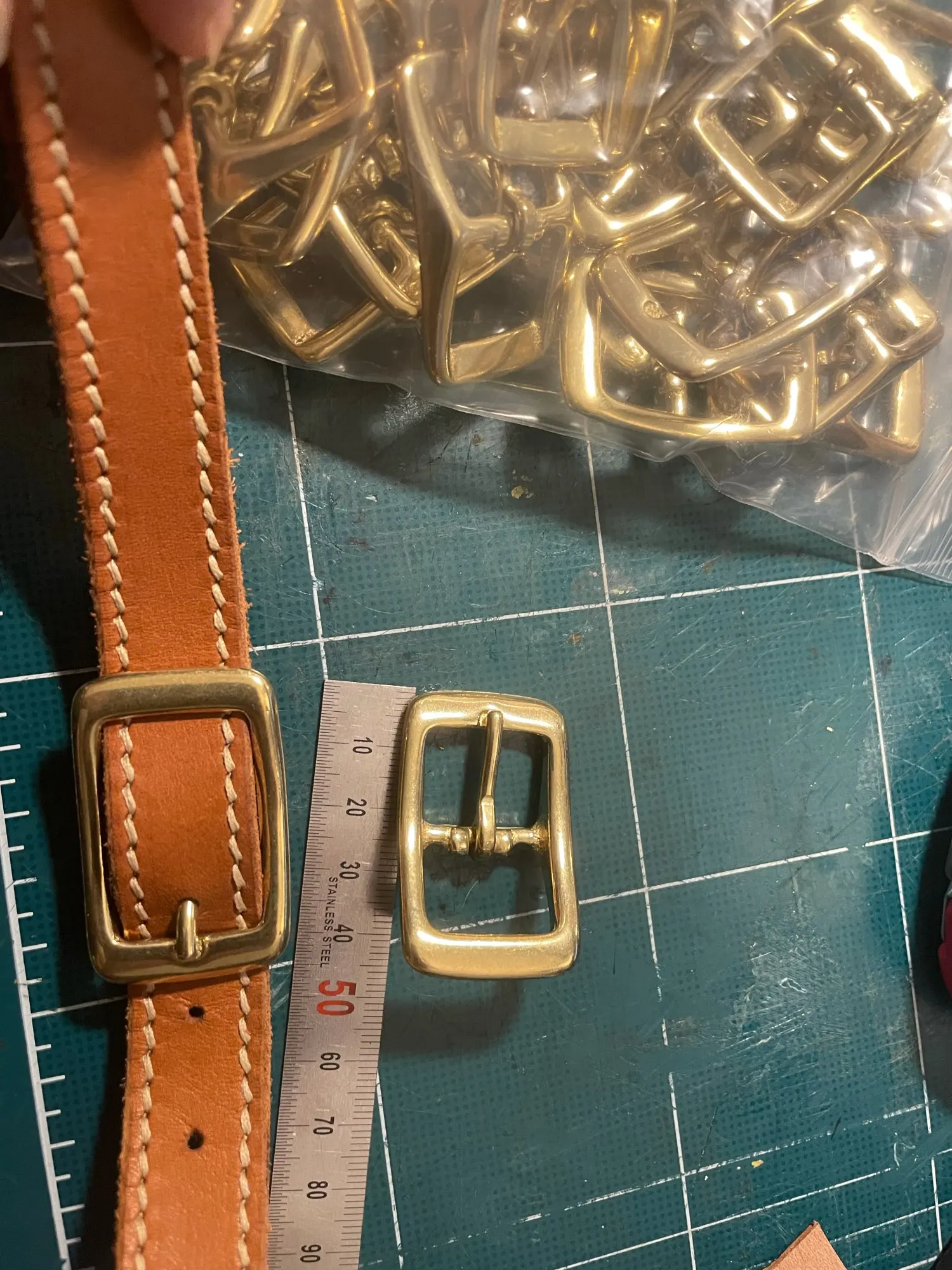 1 x boucle de ceinture en laiton tri-glide à broche unique, barre centrale centrale, pour sac en cuir, sangle bride cheval harnais licou
