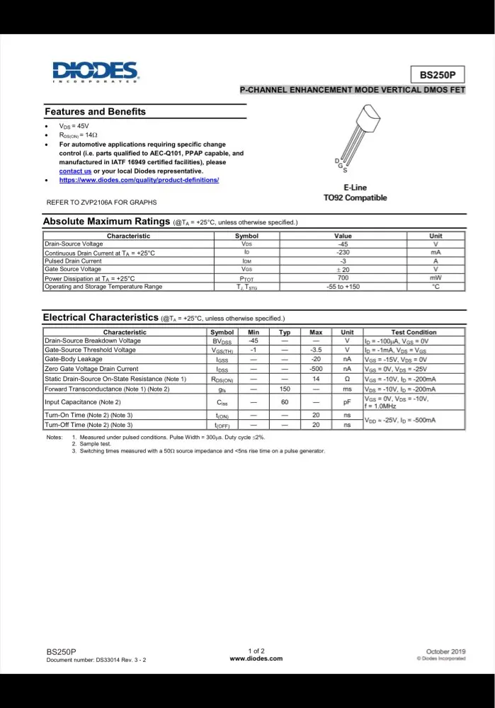 10 pièces BS250 TO92