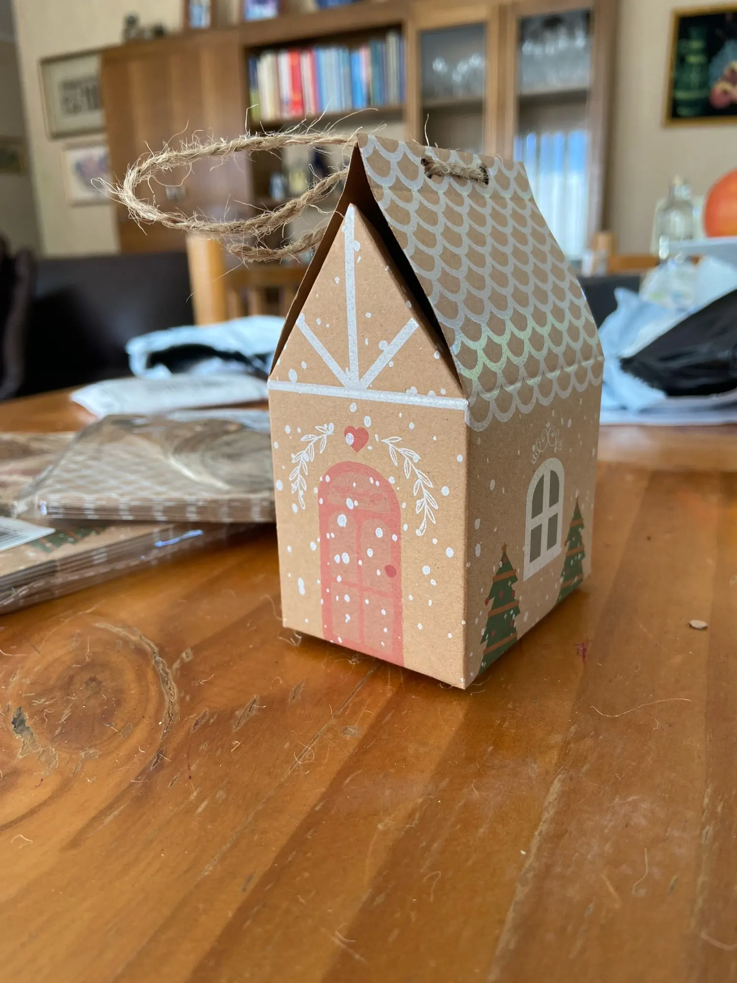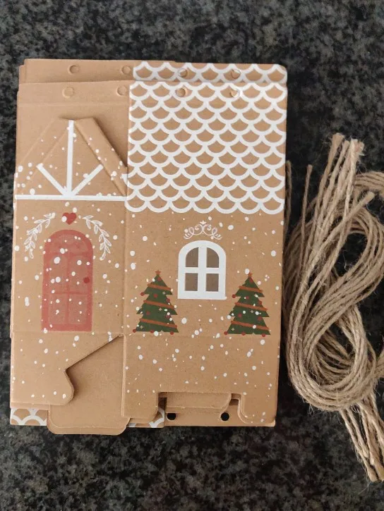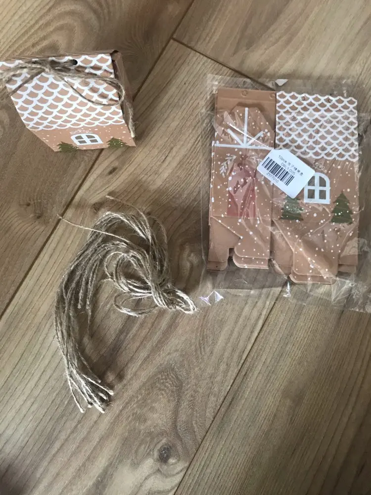 10 pièces maison forme noël bonbons coffrets cadeaux avec cordes arbre de noël suspendus Cookie bonbons emballage joyeux noël invités boîtes