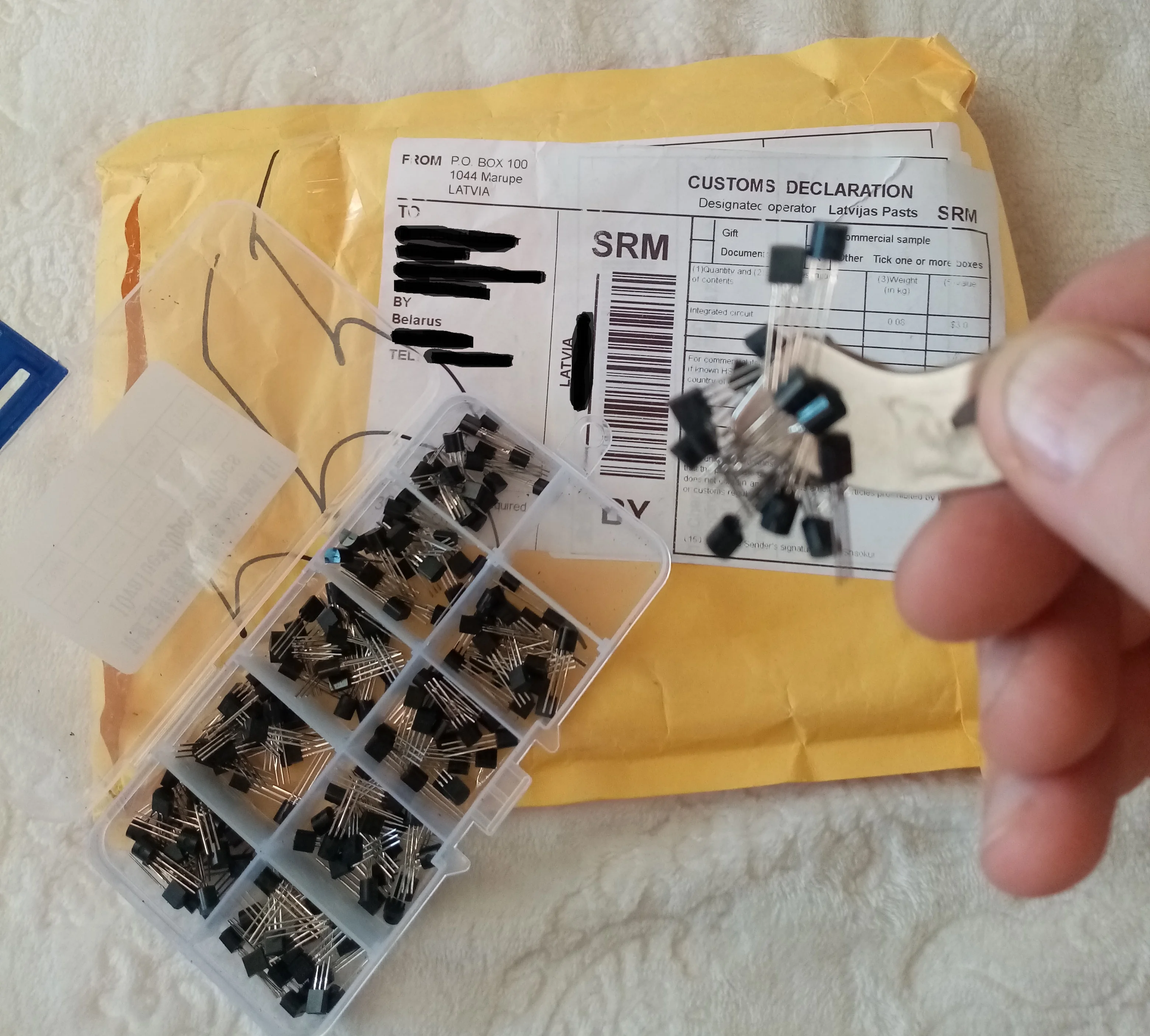 recu rapidement la commande, du 11 au 24 novembre. par contre les BC337 ne sont pas livrés et remplaces par des 2N5551 qui ne sont pas vraiment complementaires des 327 !!!!! un test rapide de certains d'entres eux montrent qu'ils fonctionnent bien.