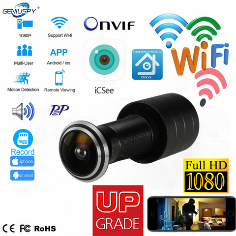 1080P sécurité sans fil oeil porte IP caméra porte cour intelligente armoire grand Angle FishEye lentille Mini judas CCTV P2P Onvif Icsee