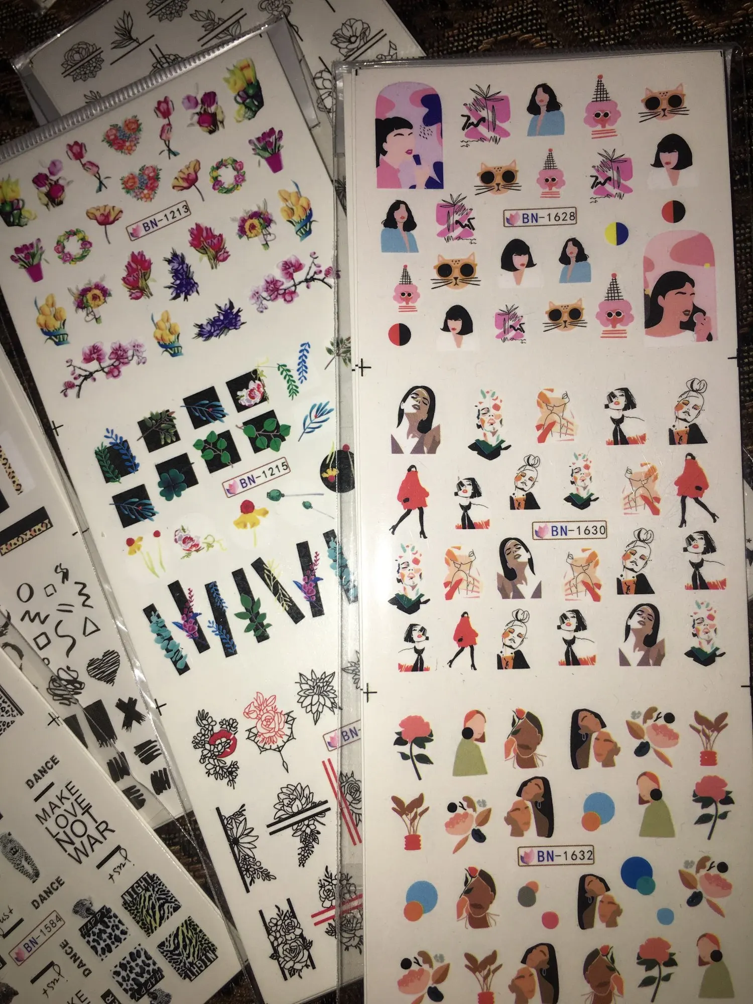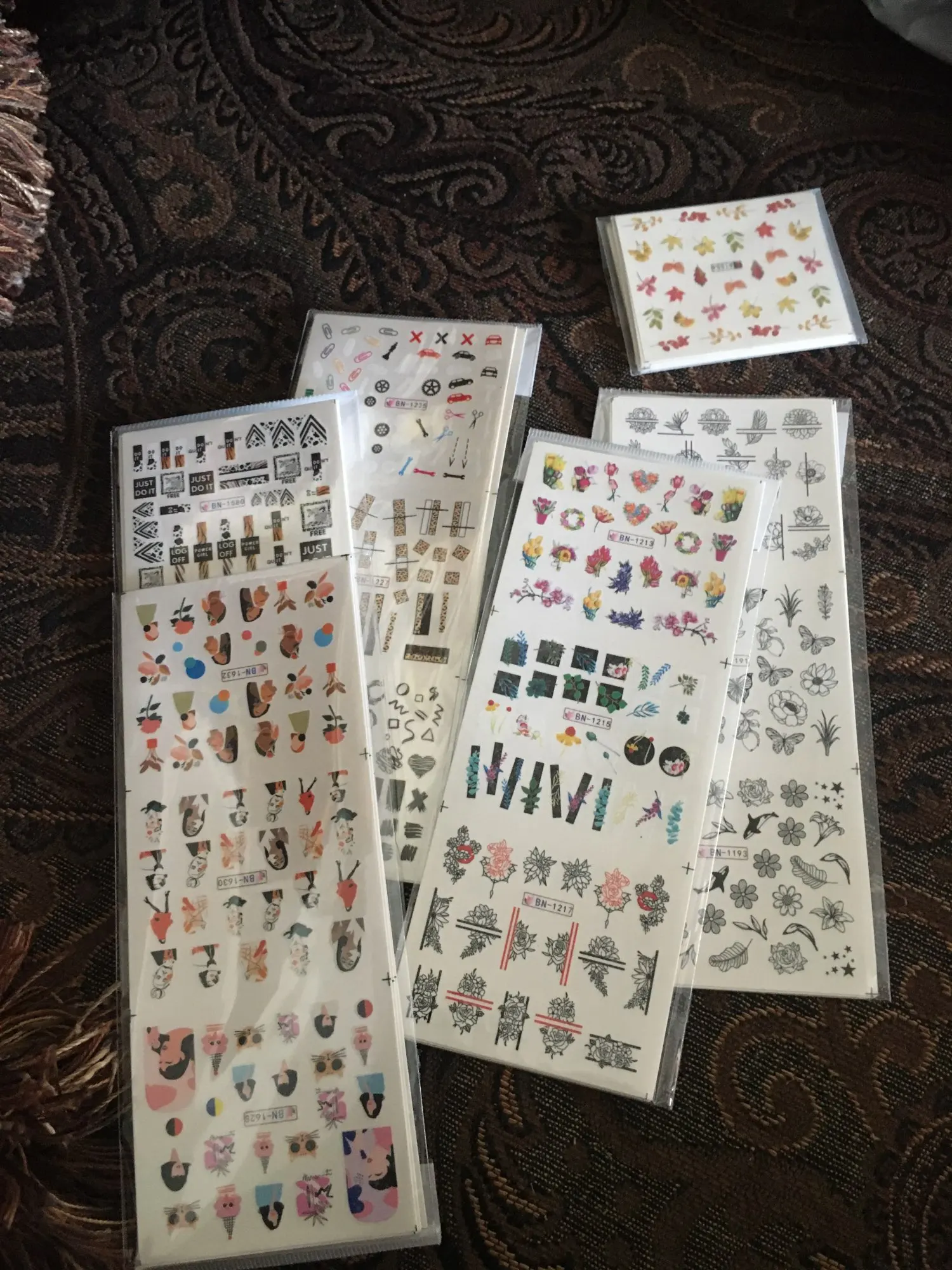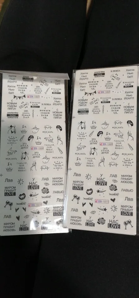 12 motifs feuilles ongle eau décalcomanies avec Inscriptions papillon transfert curseur russe lettre Sexy fille Nail Art autocollant ensemble