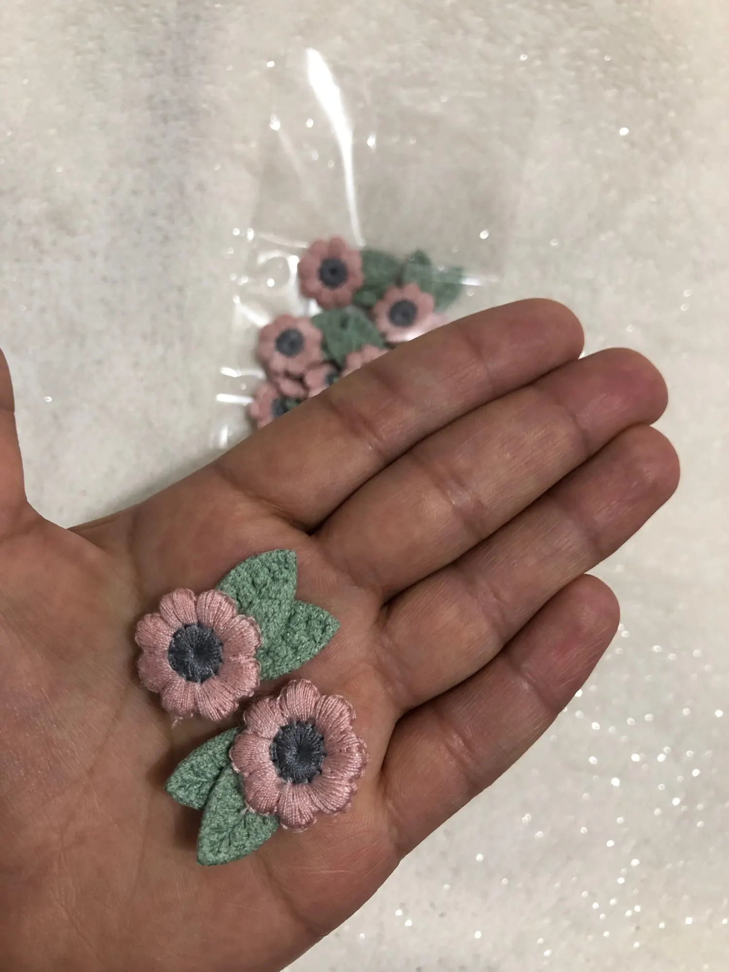 12 pièces 2*3cm laine fil fleur et feuille Appliques pour bébé artisanat chapeaux accessoires bricolage pinces à cheveux décoration en gros