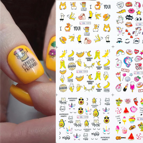 12 pièces mignon dessin animé ongles autocollants eau décalcomanies banane Fruit caractère ransfer curseur Nail Art tatouage manucure feuille enveloppes 2022 nouveau