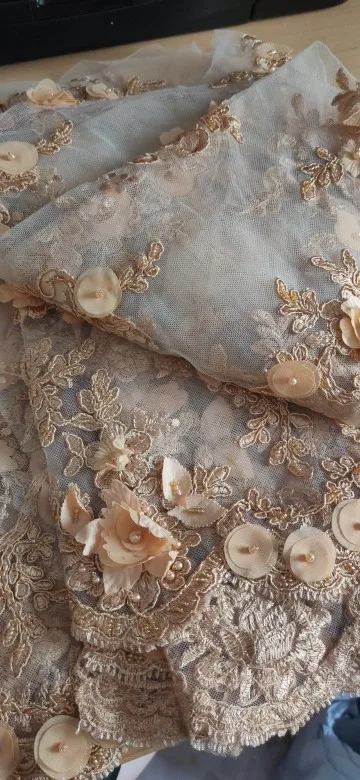 15 couleur or violet noir blanc rouge robe de mariée dentelle tissu 3D mousseline de soie fleurs ongles perle dentelle tissu livraison gratuite RS35