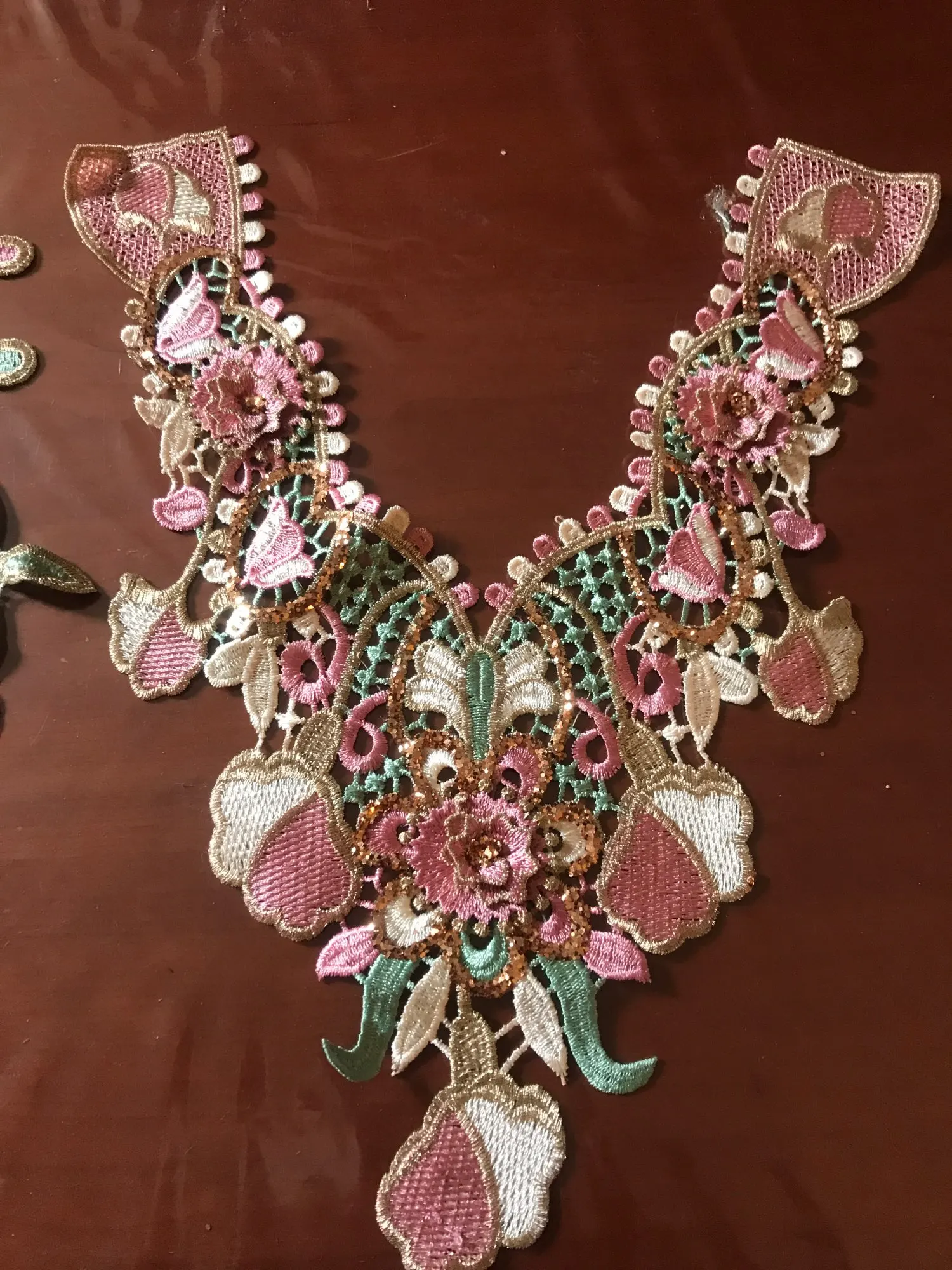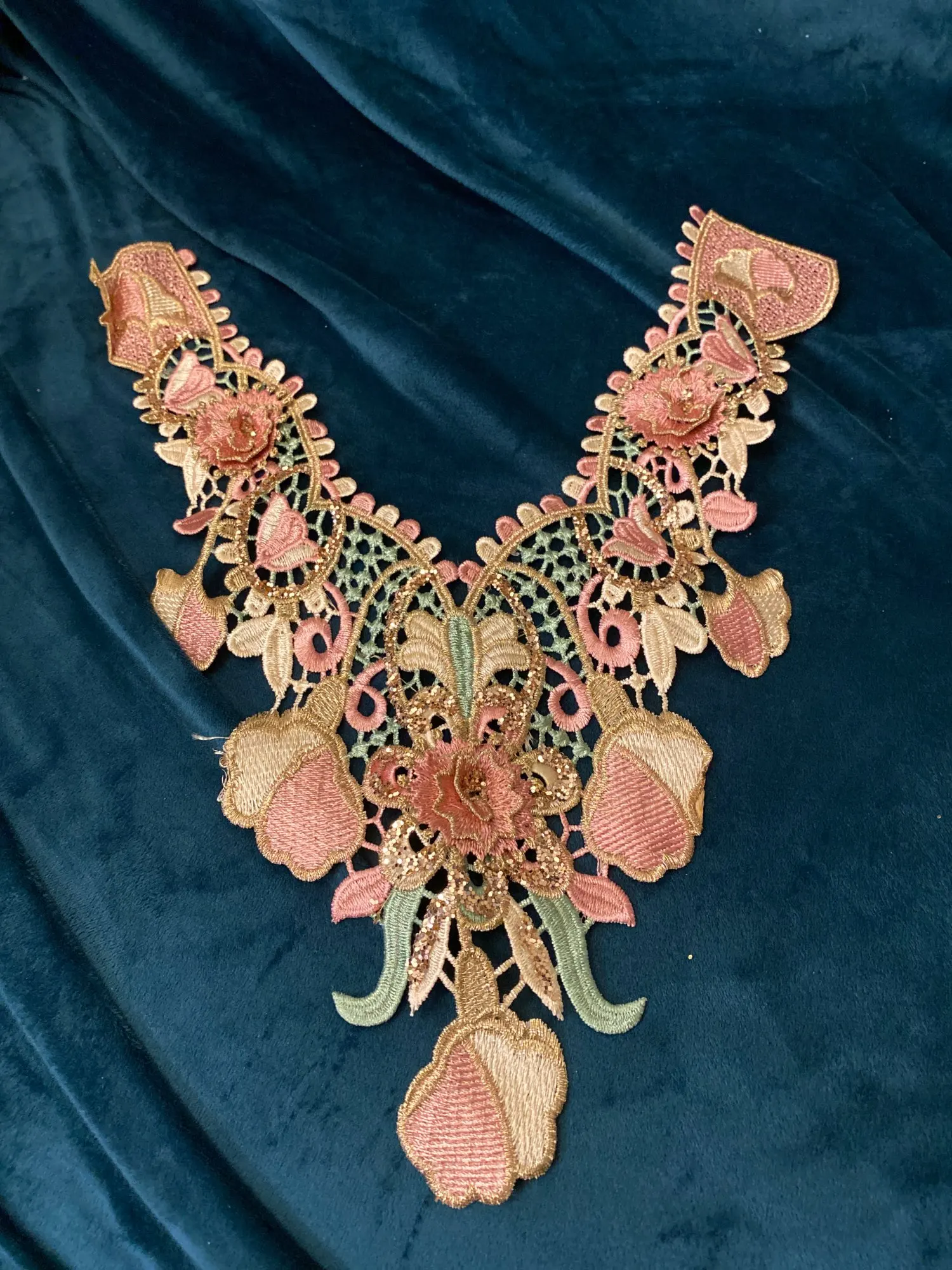 1Pc 3D tissu brodé couleur fleur Venise dentelle couture Applique dentelle col décolleté ancien collier Applique accessoires
