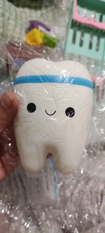 1pc 4 tailles dents forme presser cadeau sourire lent croissant mignon dessin animé main Spinner extensible Relax Squishy jouet dentiste cadeau