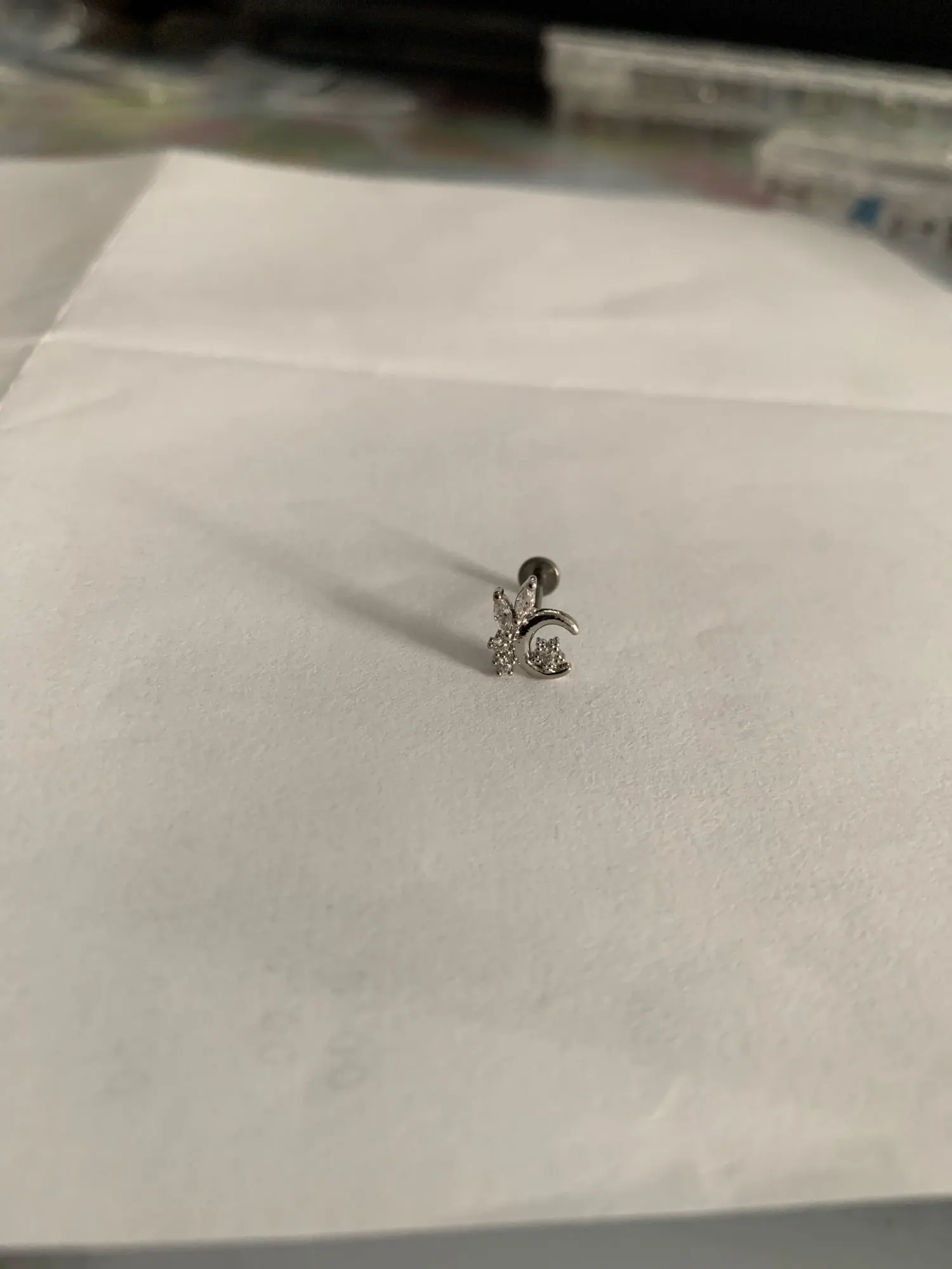 1PC G23 titane & acier 16G CZ gemme lune Labret lèvre barre anneau cristal fleur oreille Cartilage Tragus hélice Piercing vis ajustement haut 16g