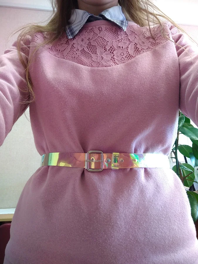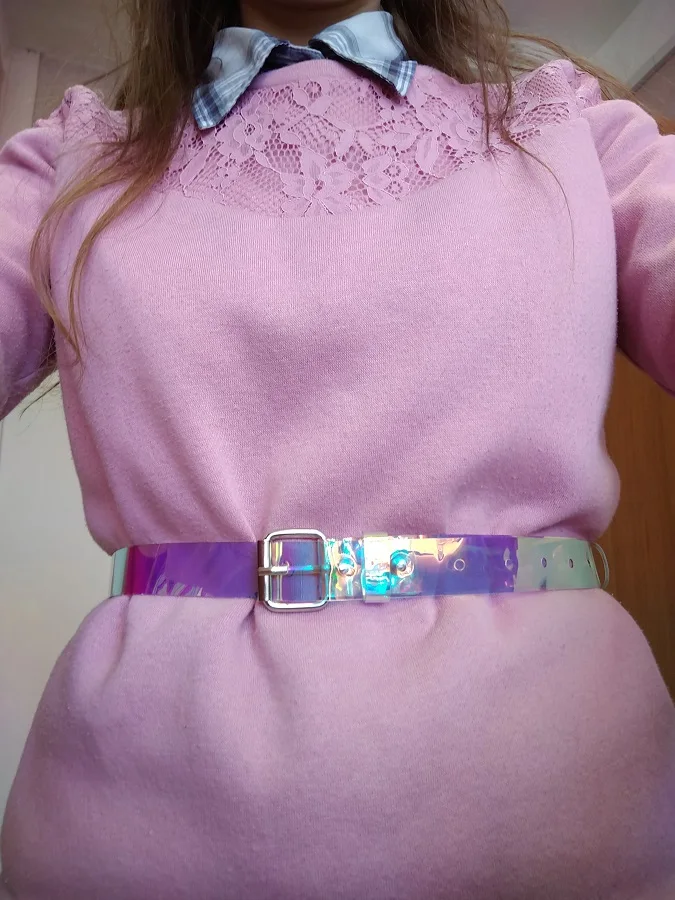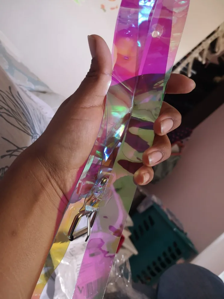 1PC Transparent femmes Laser holographique arc-en-ciel clair broche boucle large ceinture ceinture bandes sangle dames Invisible Punk ceinture