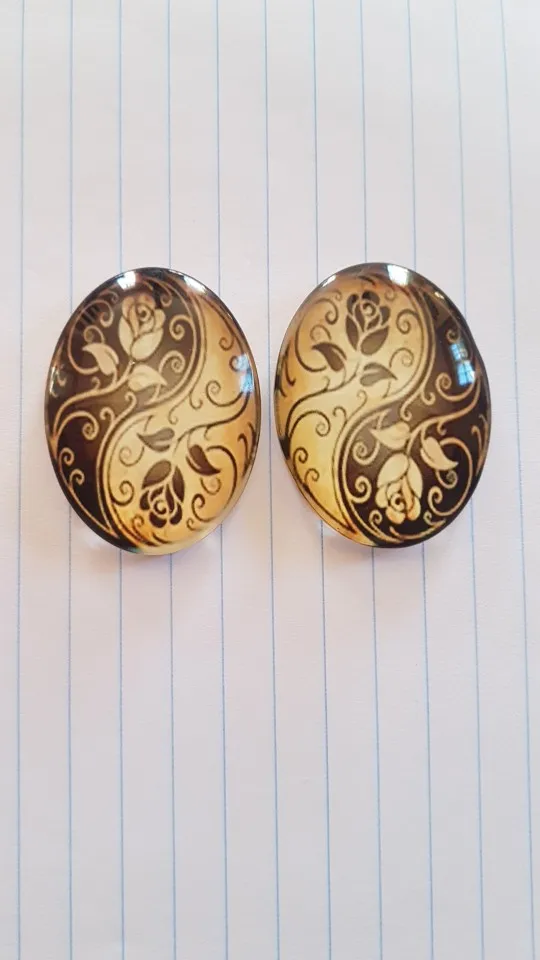 2 pièces 30x40mm nouvelle mode Tai Chi fleur à la main Photo verre Cabochons modèle dôme bijoux accessoires Supplies-I3-09