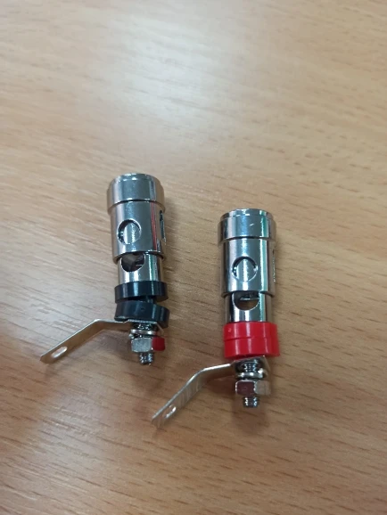 2 PIÈCES Rouge + Noir Terminal Audio Prise Banane Argent Plaqué Laiton Terminal Haut-Parleur Reliure À Ressort Presse Autobloquant