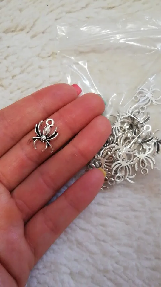 20 pcs / lot araignée charmes Antique couleur argent araignée charmes pendentifs pour Bracelets araignée toile d'araignée charmes faisant des bijoux
