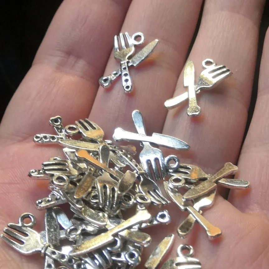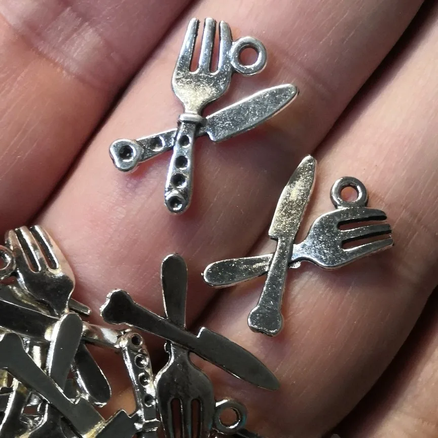 20 pièces ustensiles de cuisine breloques Antique couleur argent couteau de cuisine bijoux à breloques bricolage cuisinier livre breloques Pan cuillère