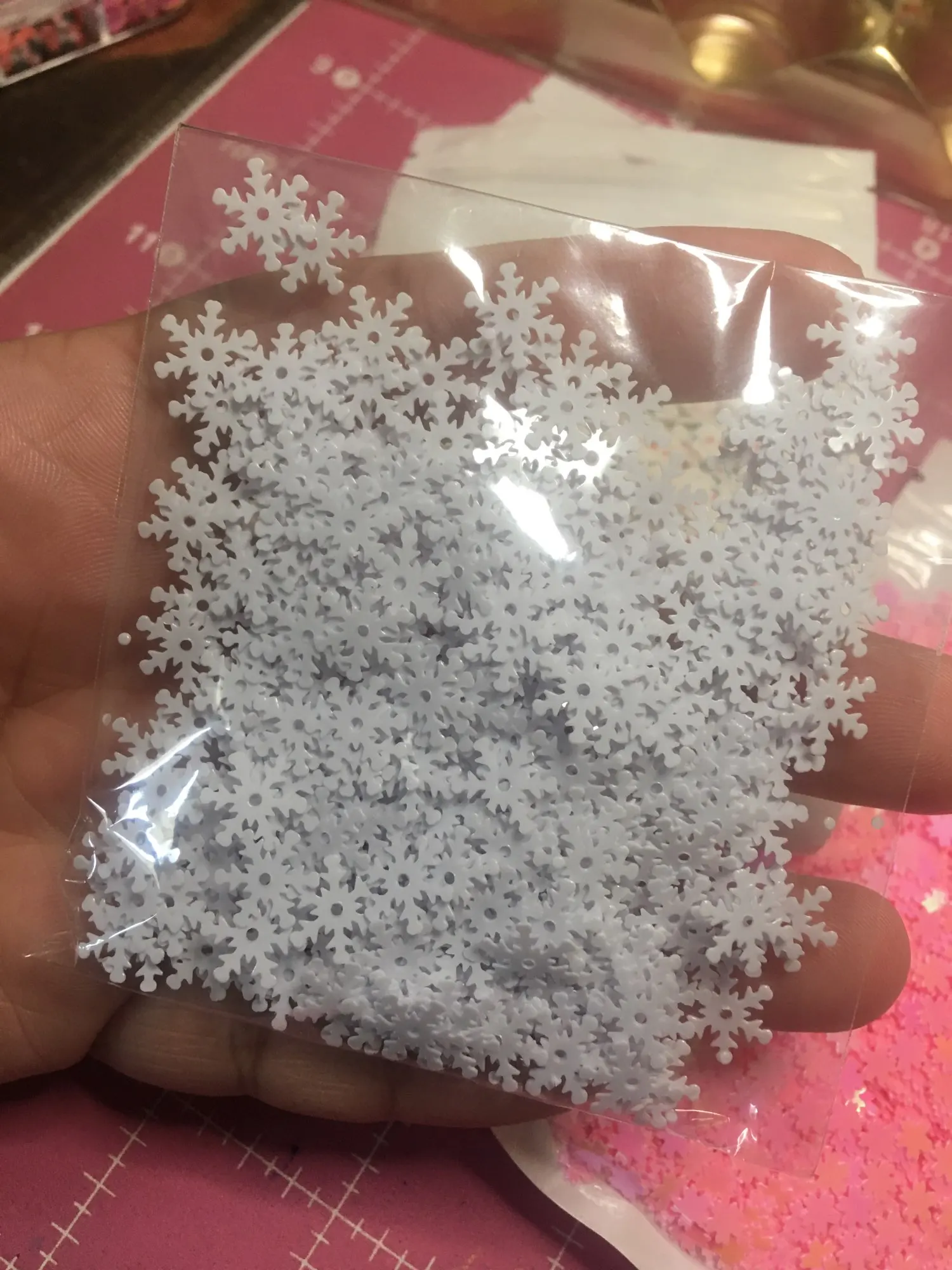 200 pcs/lot 10mm flocon de neige PVC paillettes avec 1 trou central cadeau de noël bricolage vêtements Navidad ornements blanc neige