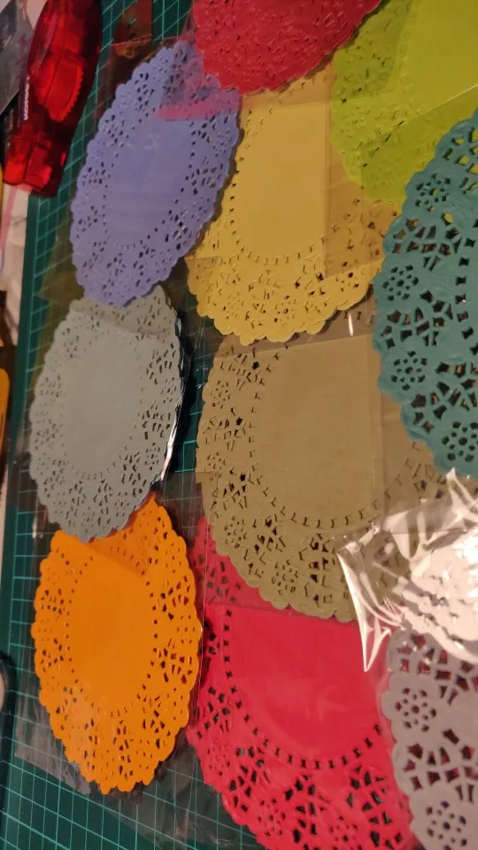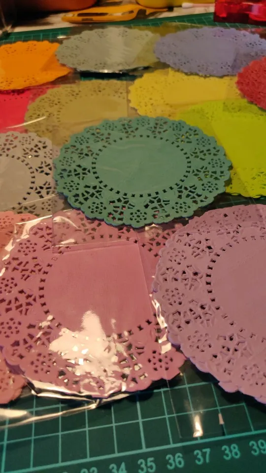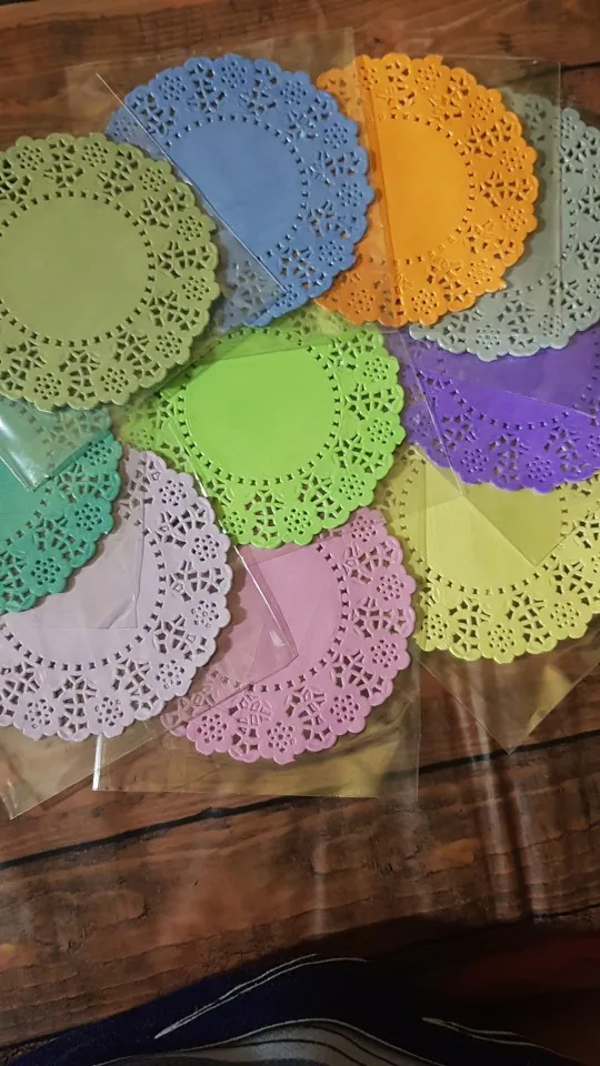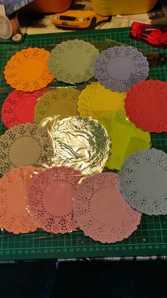 200 pièces/lot 4.5 ''bricolage dentelle papier décoratif napperons coloré fleur Style évidé Place Mat Scrapbook accessoires