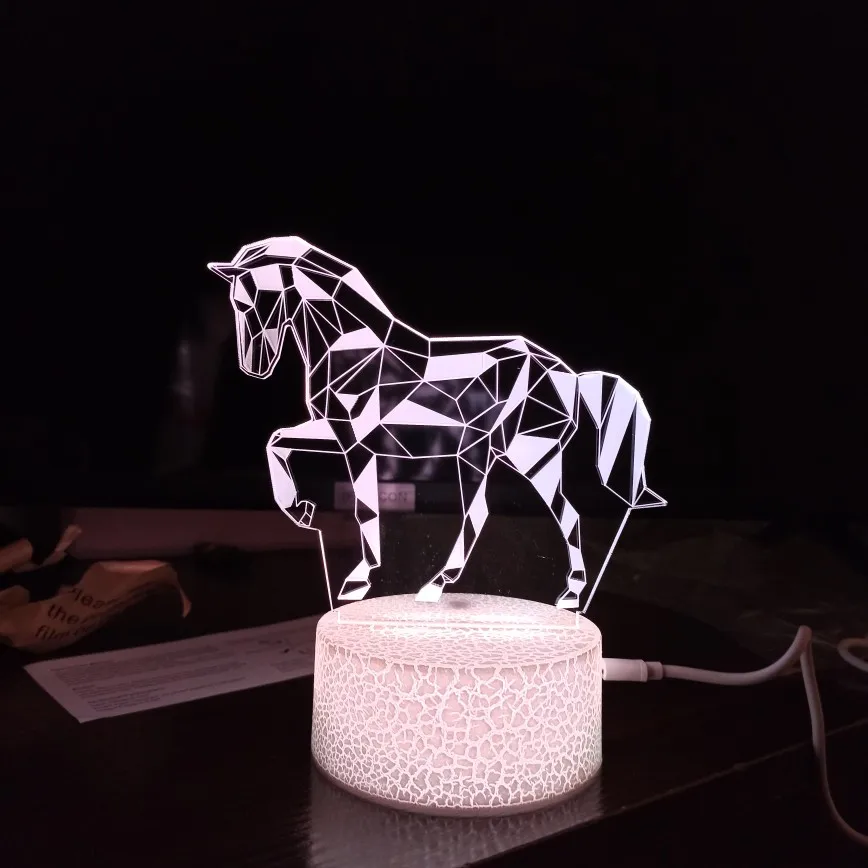 2022 plus récent 3D LED enfant veilleuse créative table à manger lampe de chevet romantique cheval lumière lampe enfants décoration de la maison cadeau