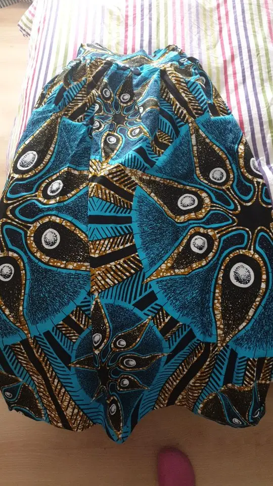 Très belle jupe en Wax, beau tissu ! Le vendeur m'a contacté pour les mensurations exactes, ce qui est très sympa pour être sûr d'avoir la bonne taille. par contre, la jupe est très longues, j'ai du la raccourcir pour qu'elle ne traine pas par terre en plat.