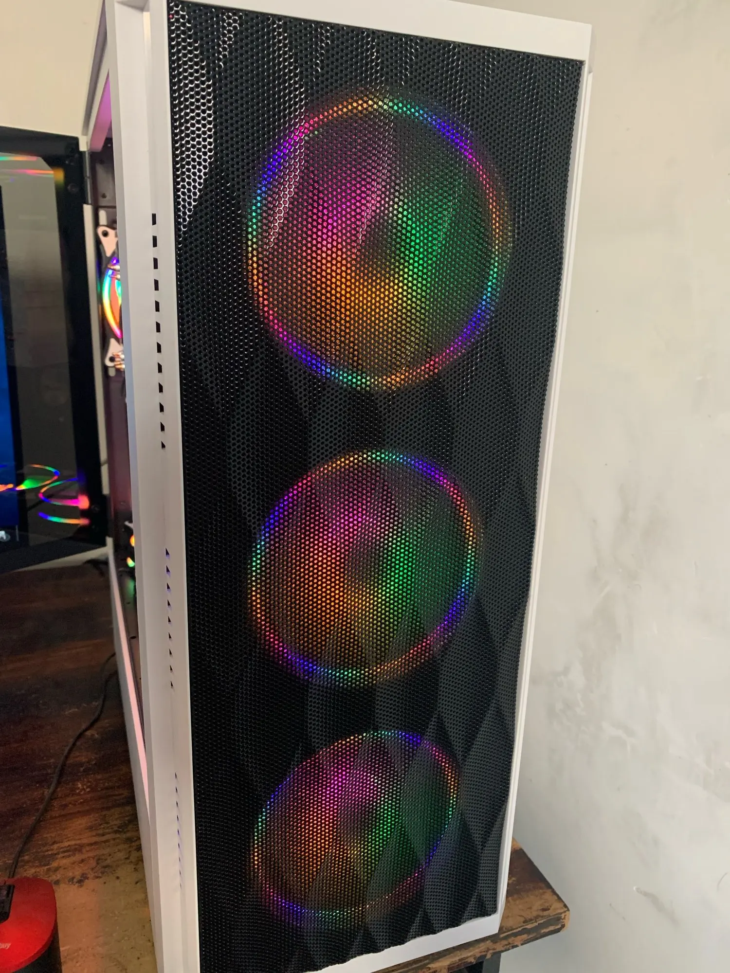 Très joli ventilateur qui sont effectivement réglable grâce au 4 pin (Attention : avec prise molex = non réglable). L'argb est "présent" MAIS non réglable, non compatible rgb fusion et toutes les autres variantes car il n'y a pas de câble Argb qui part du ventilateur. Très bruyant à pleine vitesse mais débit d'air satisfaisant. Pas de vibrations grâce aux patins. À privilégier dans une configuration sans possibilité de régler l'argb.