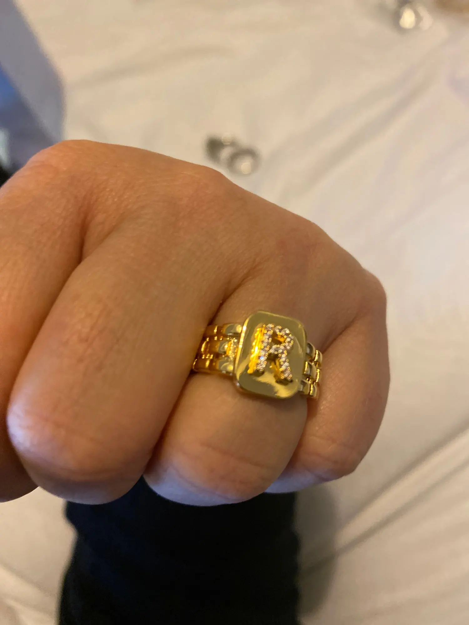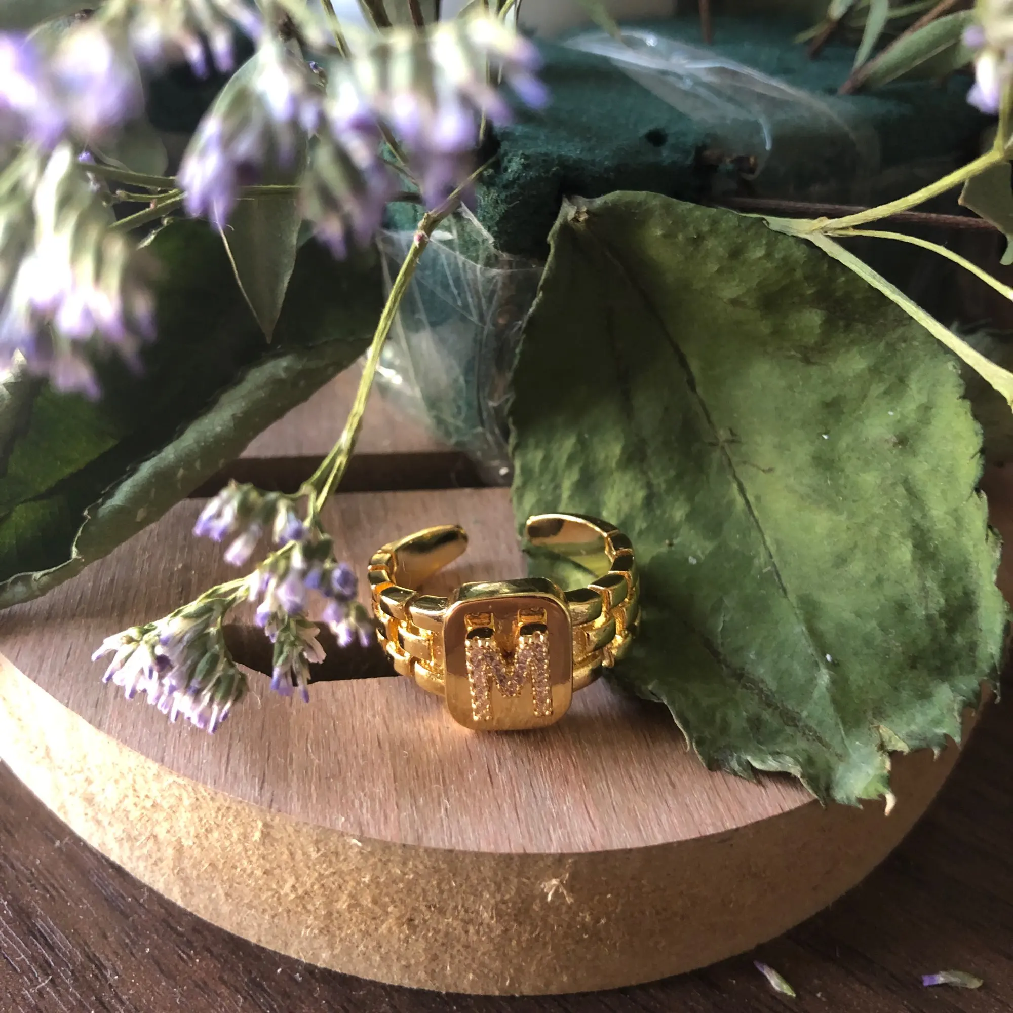 2022 tendance Hiphop Réglable 14k Or Plaqué AAA Zircon A-Z Lettre Bague Bracelet Carré Déclaration Initiale En Or Anneaux Pour Les Femmes