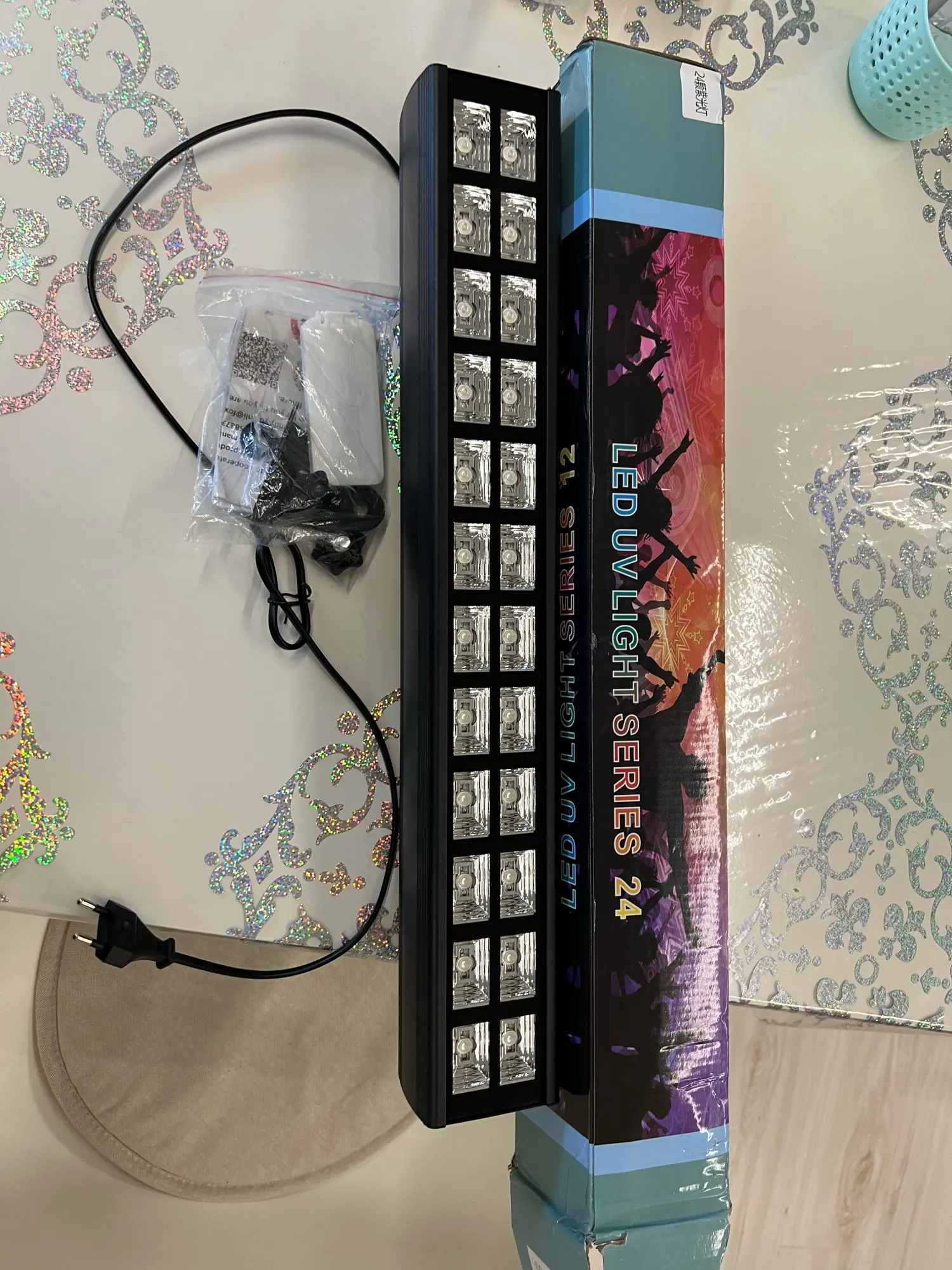 Lumière led UV très efficace et puissante qui nécessite un refroidissement assez bruyant , les options accessibles par la télécommande est un vrai plus , possibilité de passer du mode automatique ou musical au mode DMX , je le recommande fortement mais attention , bruit de ventilation très fort donc bruyant !!!! Livraison ultra rapide en passant par l'Espagne pour la France.