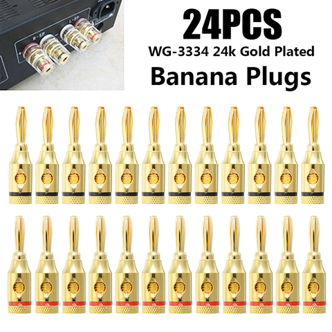 24pcs 4mm 24k Gold-Plated Musical Cable Wire Banana Plug Audio Speaker Connector Plated Musical Speaker Cable Wire Pin Connector
