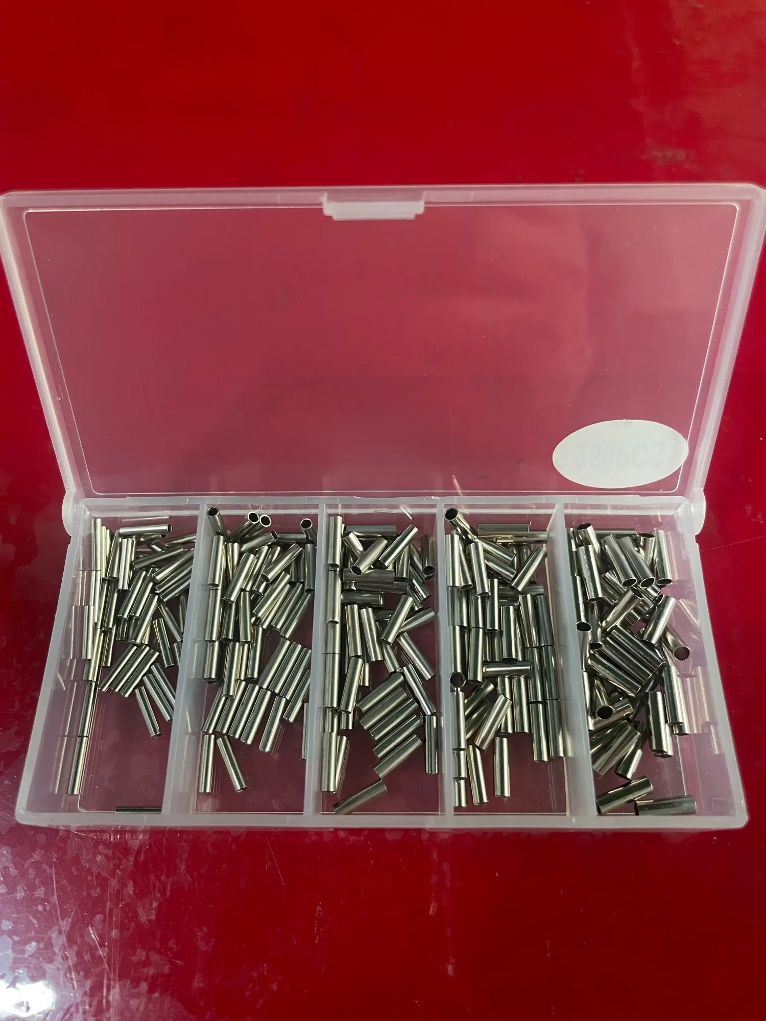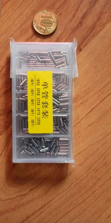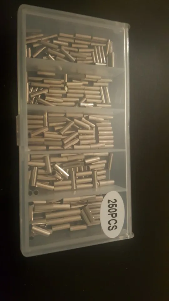 250 pcs/lot simple baril sertissage manches ligne de pêche fil Leader cuivre Tube connecteurs 5 taille mixte cuivre Tube avec boîte