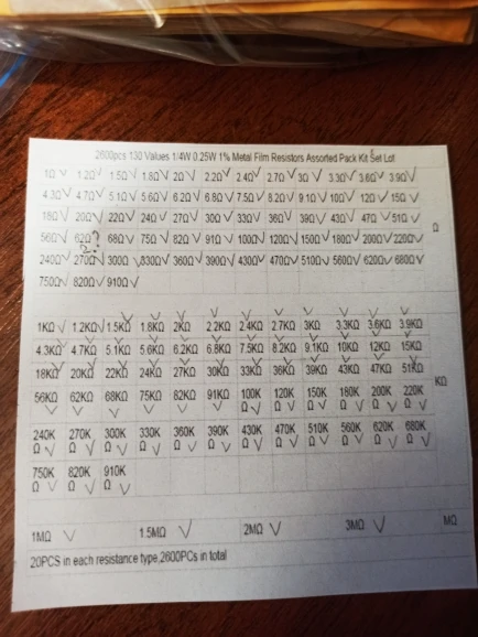 2600 pièces 130 valeurs 1/4W 0.25W 1% résistances à Film métallique assortiment Kit Lot de résistances assortiment Kits condensateurs fixes