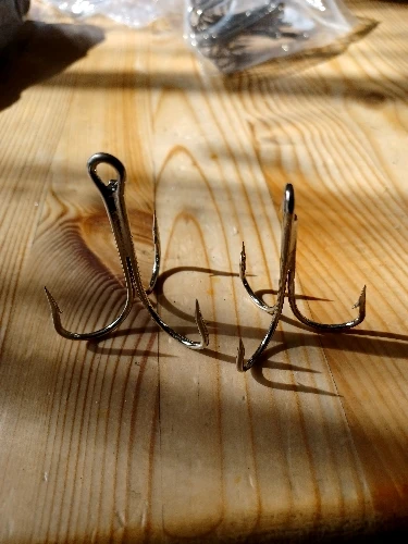 Hameçons triples pas piquants. Se tordent à la main. commandé du 6/0 pour gros poissons. Cela n'ira pas du tout . TRES TRES déçu !!! (plus de 1€ le triples !!!)