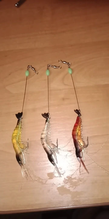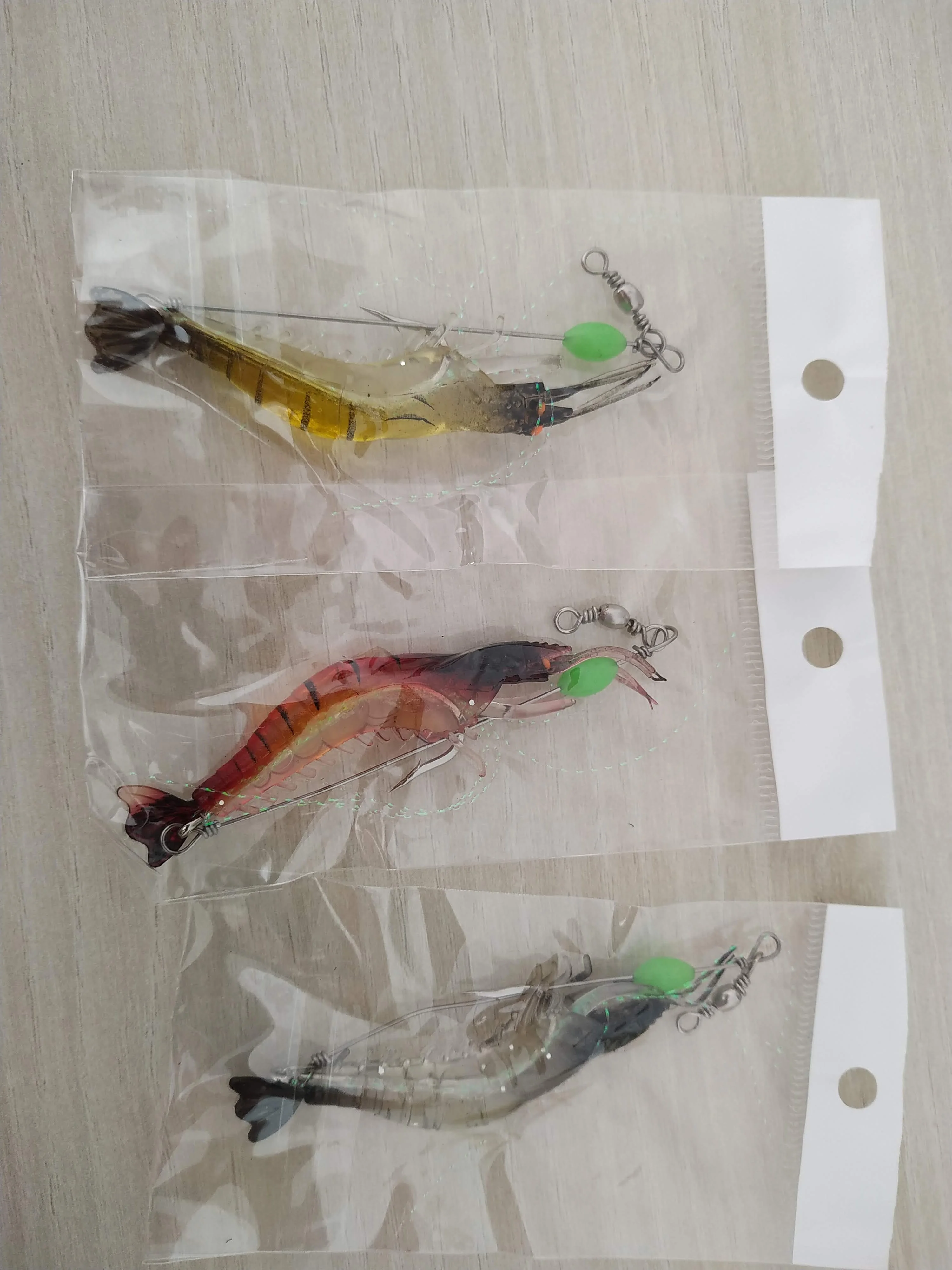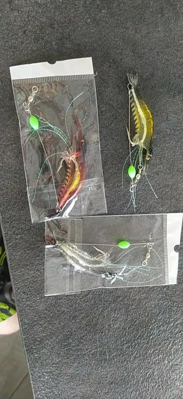 3 pièces trois couleurs Simulation leurre doux appâts crochets pour accrocher faux crevettes leurre bionique crevettes avec lumineux en forme de crevette souple appât