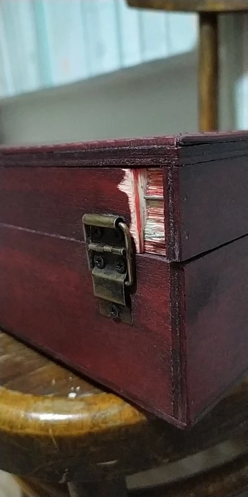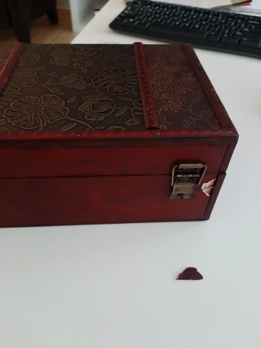 Le produit est mal emballé, il a pris des chocs en route, les clous qui étaient mal mis ont été arrachés. Il va falloir coller et remettre des clous, impossible de l'offrir ça va pas être beau. Dommage il était joli de l'extérieur.