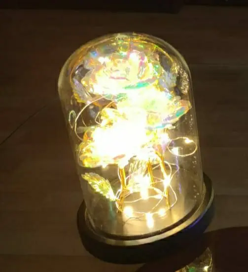 3 têtes galaxie Rose éternelle 24K feuille d'or fleurs en verre dôme 2 Modes LED lumières cadeaux pour noël saint valentin mariage
