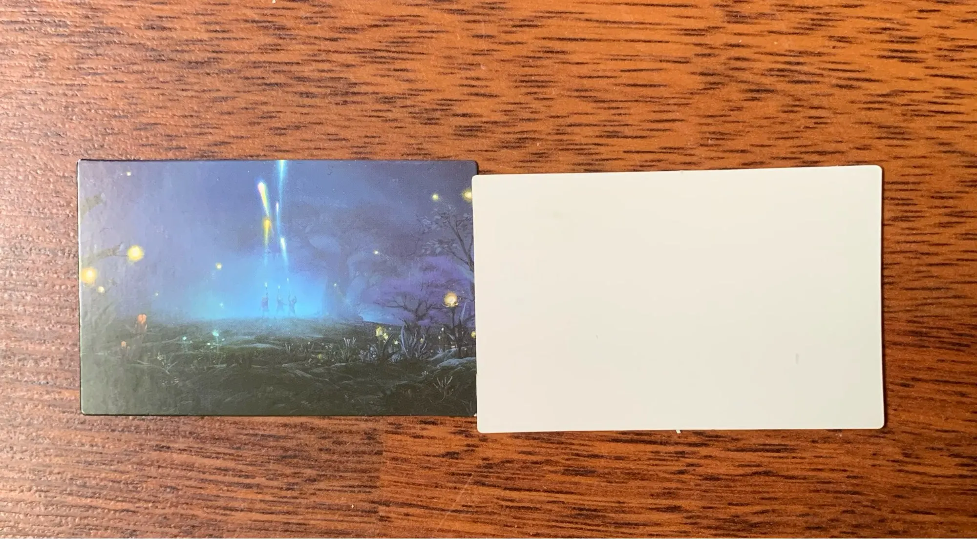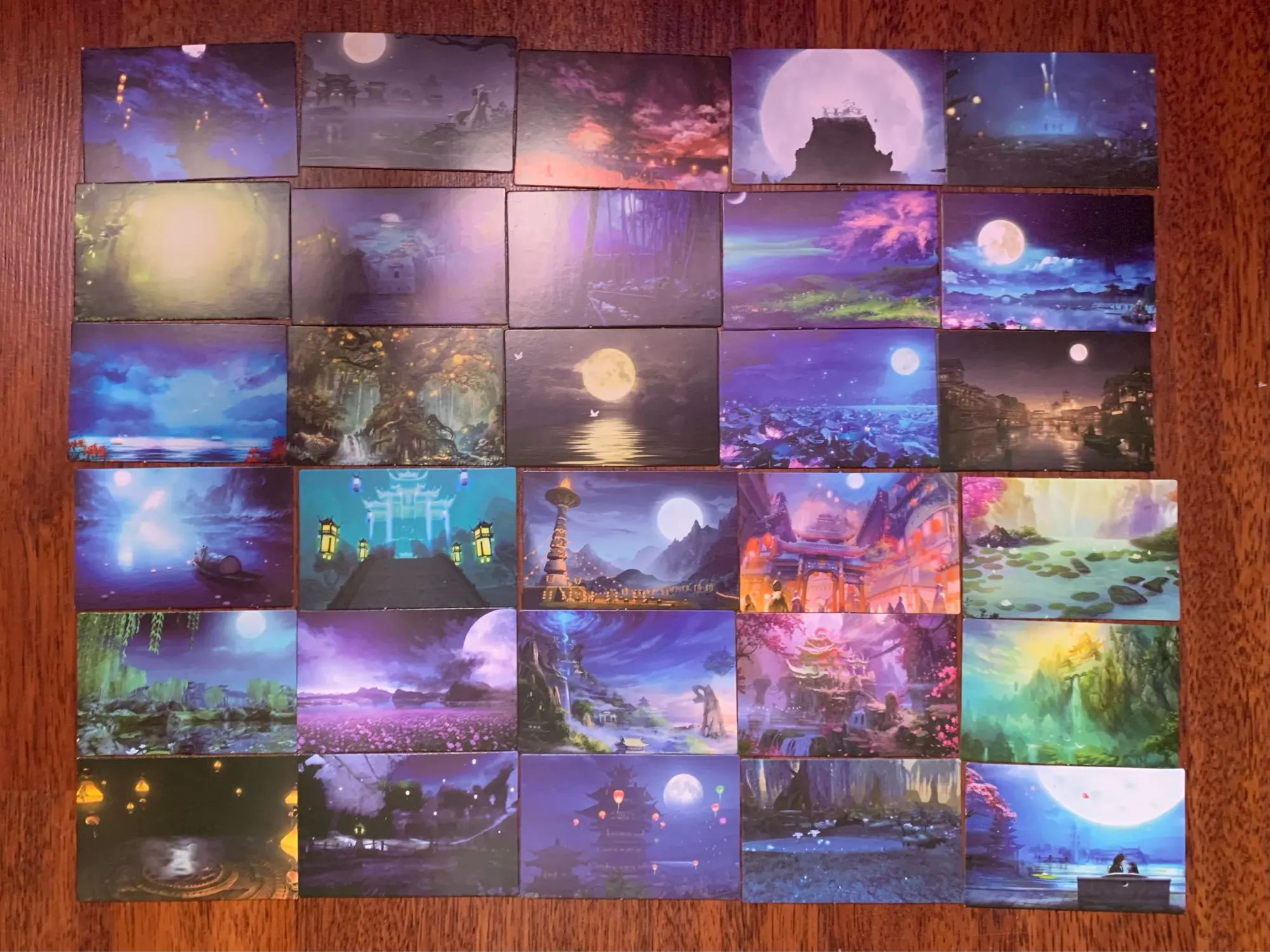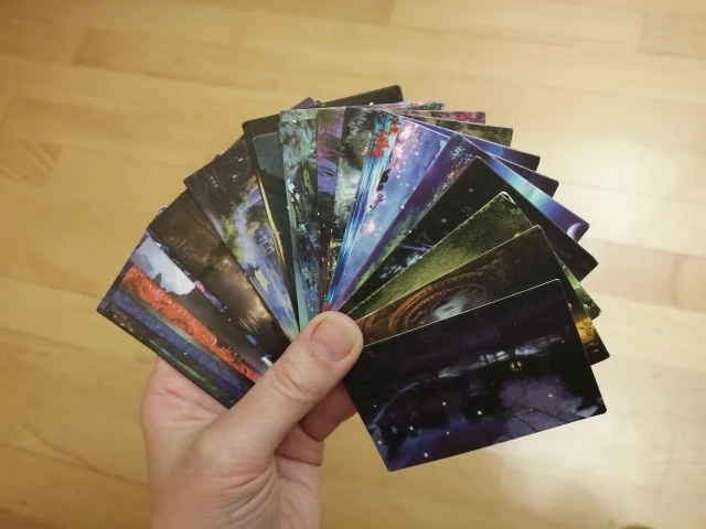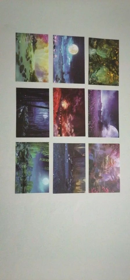reçu en retard, cartes jolies mais pas de qualité incroyables, en grande taille l'image peut etre un peu flou c'est dommage sinon l'esthétisme en lui même est incroyable, la créativité est au rendez vous et les paysages sont superbes je recommande ! même si je me demande si les petites cartes ne sont pas de meilleures qualité...
