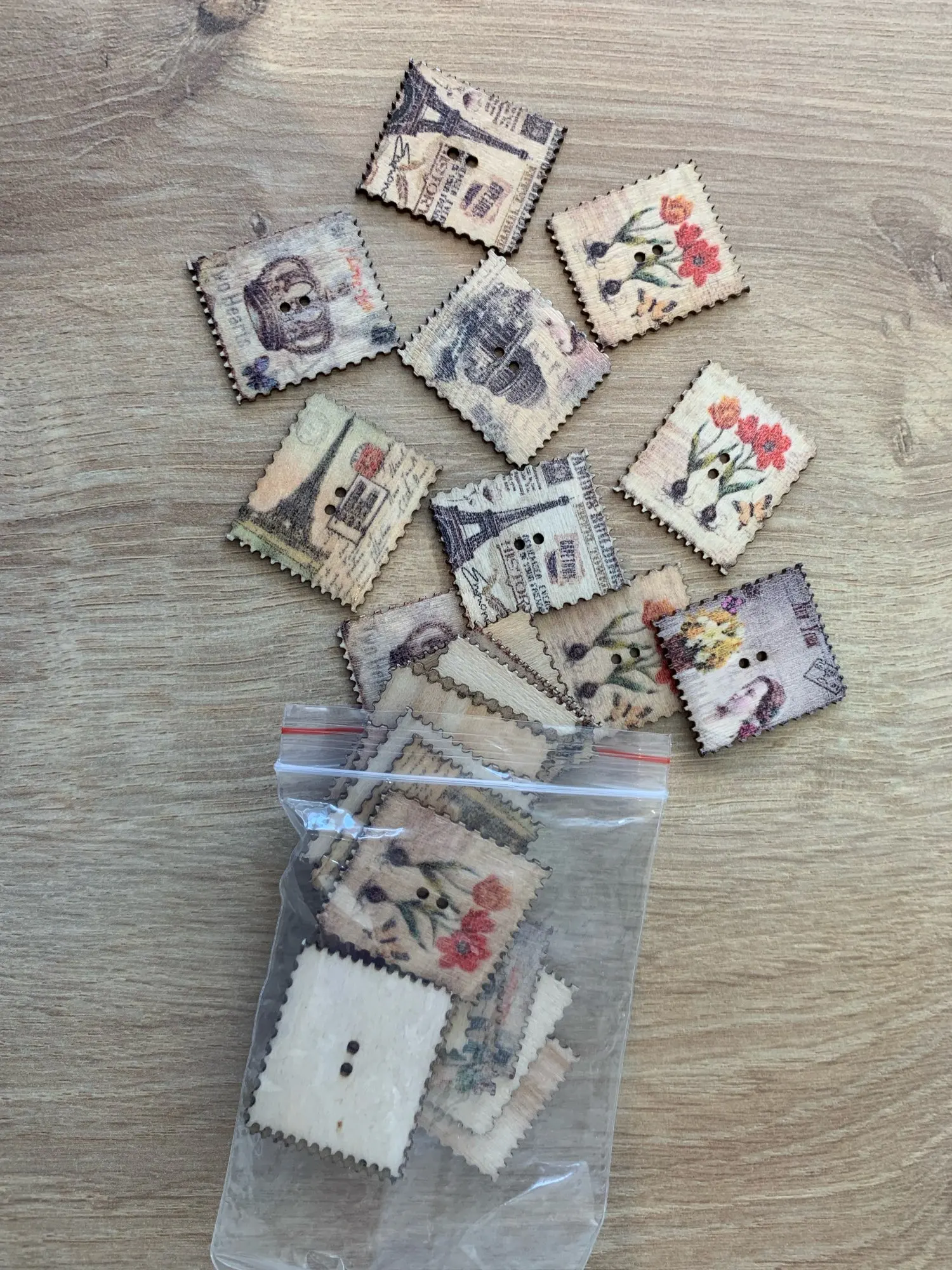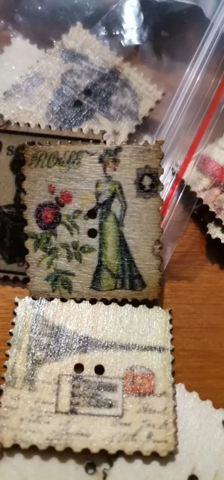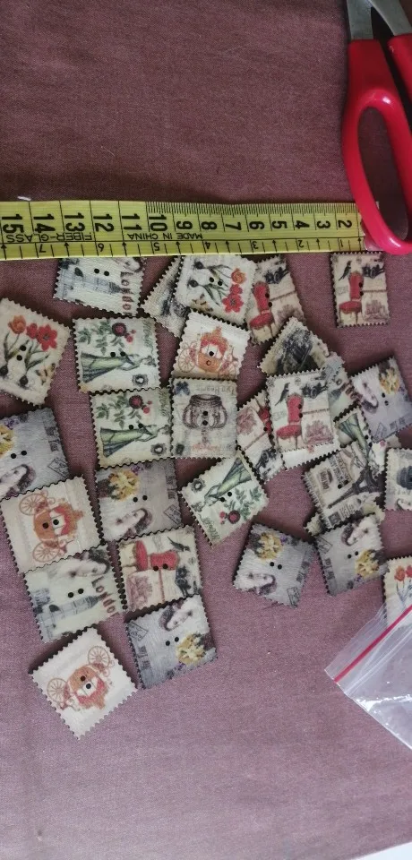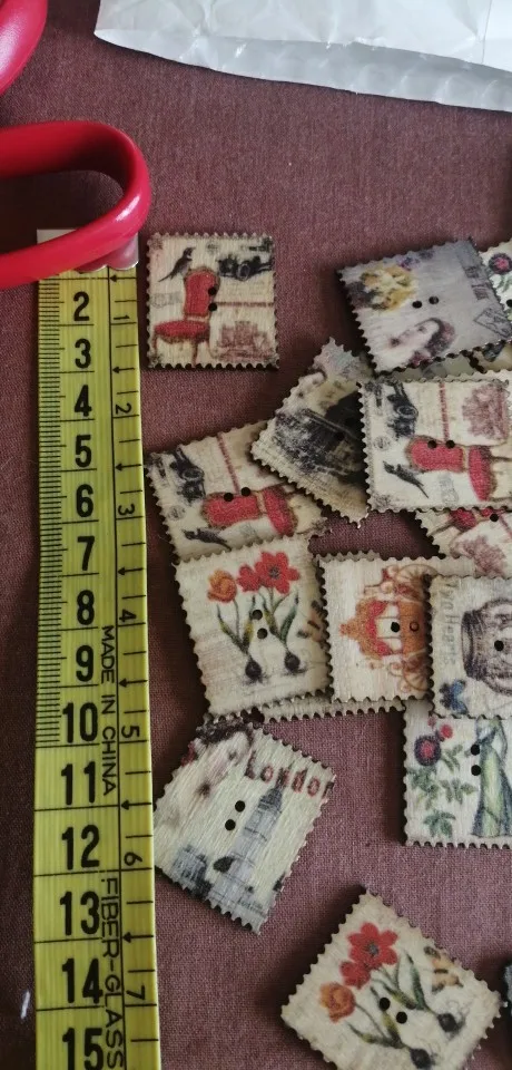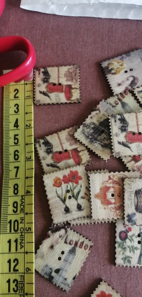 30 pièces rétro peint 2 trous carré timbre bois boutons pour coudre Scrapbook vêtements artisanat travail manuel accessoires carte bricolage 30x25mm