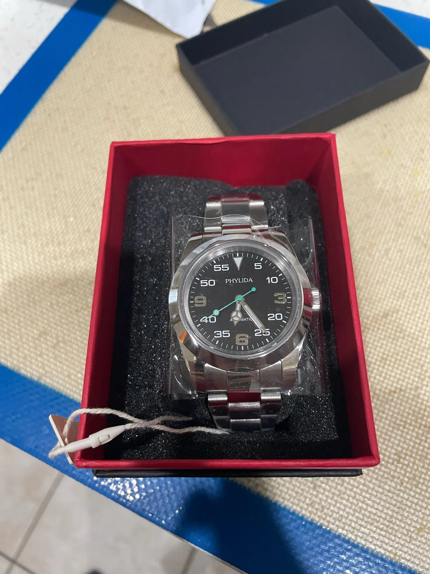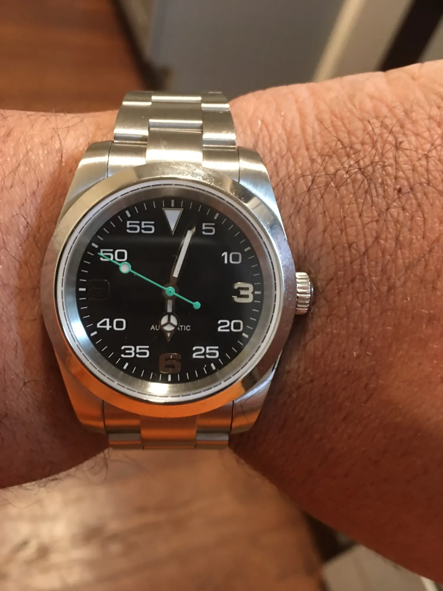 39mm automatique mécanique luxe pilote montre Air-roi cadran noir 100M résistant à l'eau