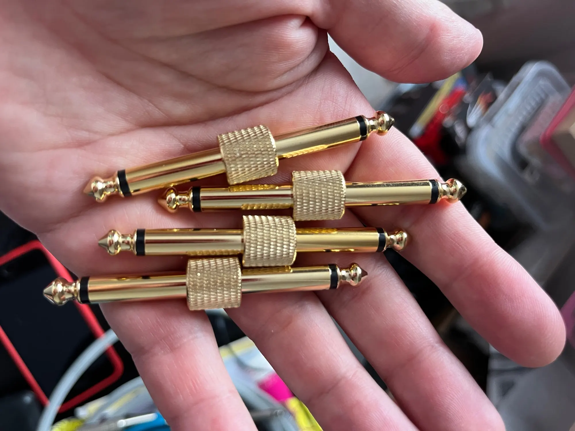 4 pièces guitare effet pédales convertir Instrument connecteur adaptateur connecteur métal soudure Plug Patch Audio adaptateurs 6.35mm jack