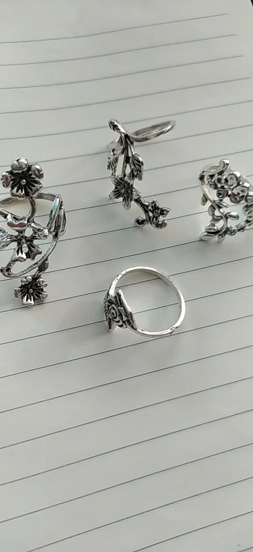 4 pièces Vintage Rose fleur anneau ensemble pour femmes Antique argent couleur feuille sculpture Knuckle anneaux bohème bijoux déclaration 008