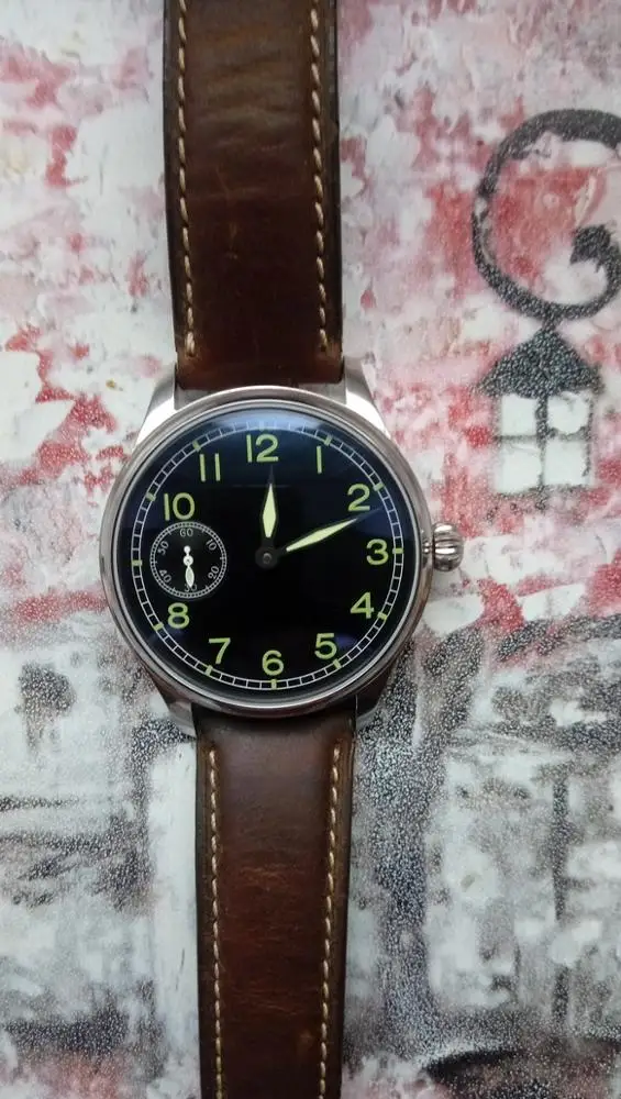 44mm parnis cadran noir lumineux 6497 Remontage manuel mouvement hommes Montre-bracelet