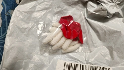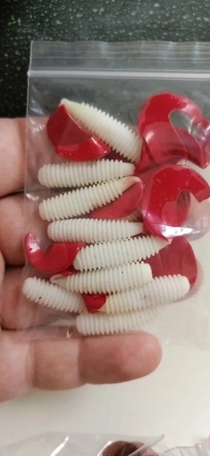Le produit a l’air ok mais je remarque que la queue est trempée dans l’encre rouge, c’est pas un caoutchouc rouge. Je sais pas si la couleur va partir mais l’avantage est que la queue va pas se détacher facilement à cause que c’est une autre couleur de base de plastisol. J’aime cette grandeur qui va fitter avec mon jig 1/8. We will see...