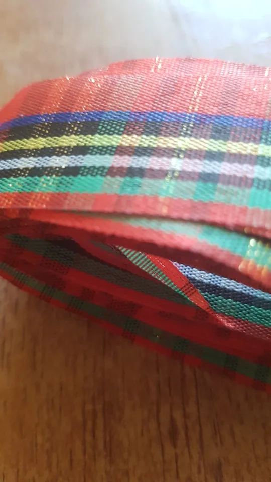 Ruban conforme à la photo. Joli pour déco de Noël.